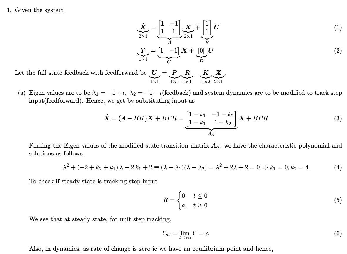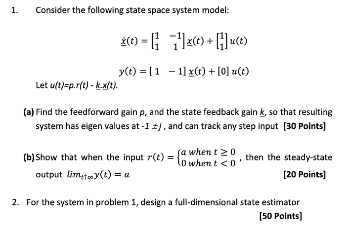1. Consider the following state space system model: y(t) [1 -1]x(...