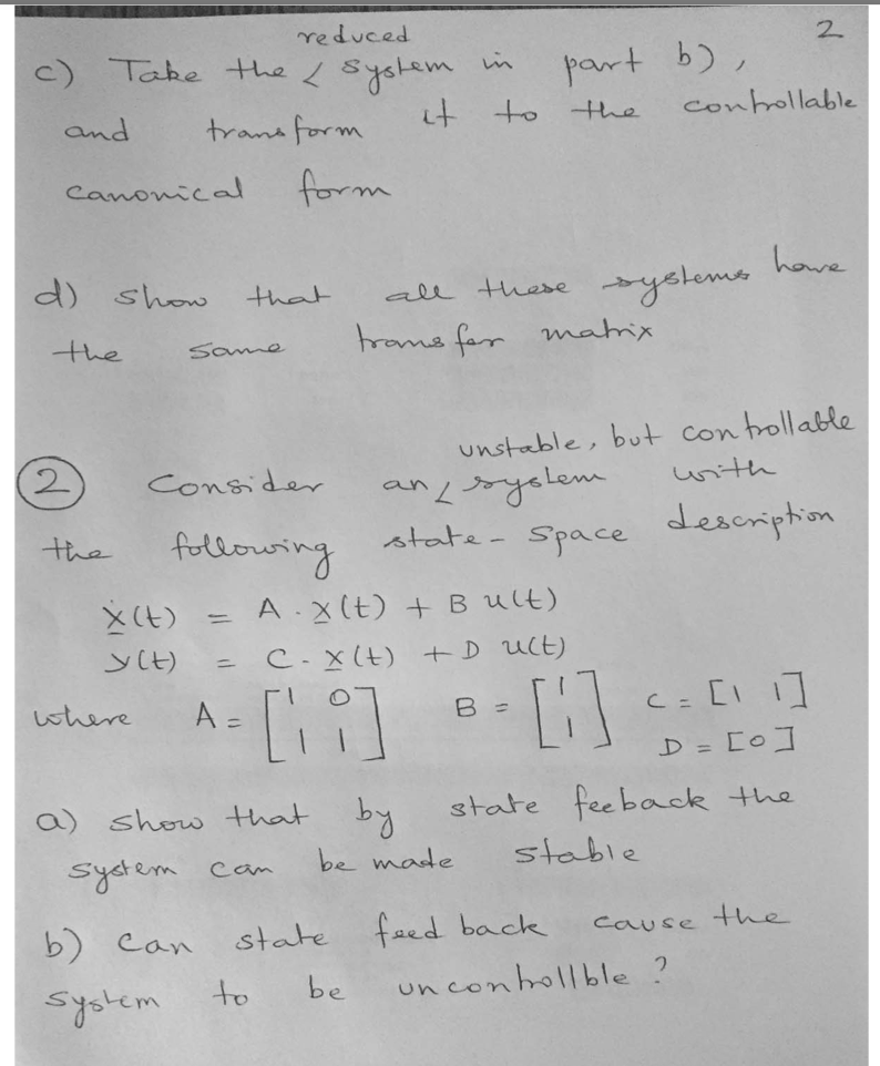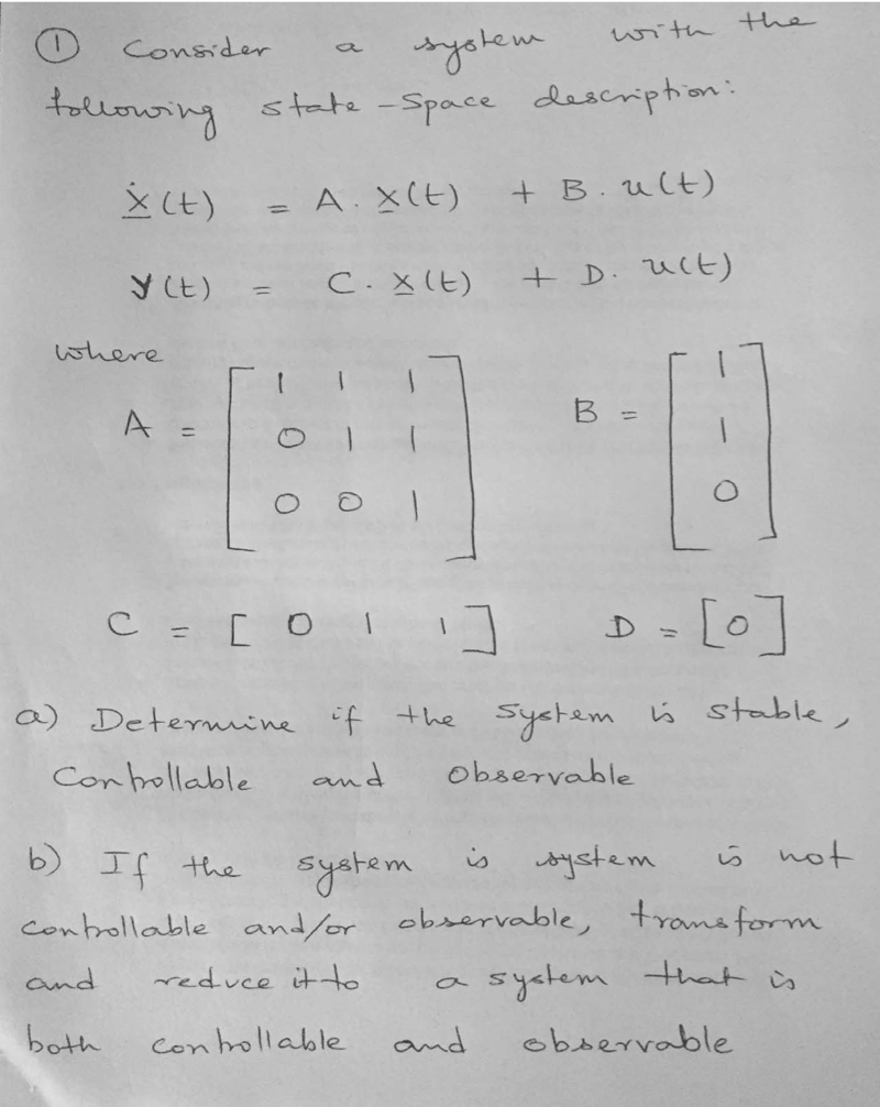 I Consider a system with the following state -Space description: ...