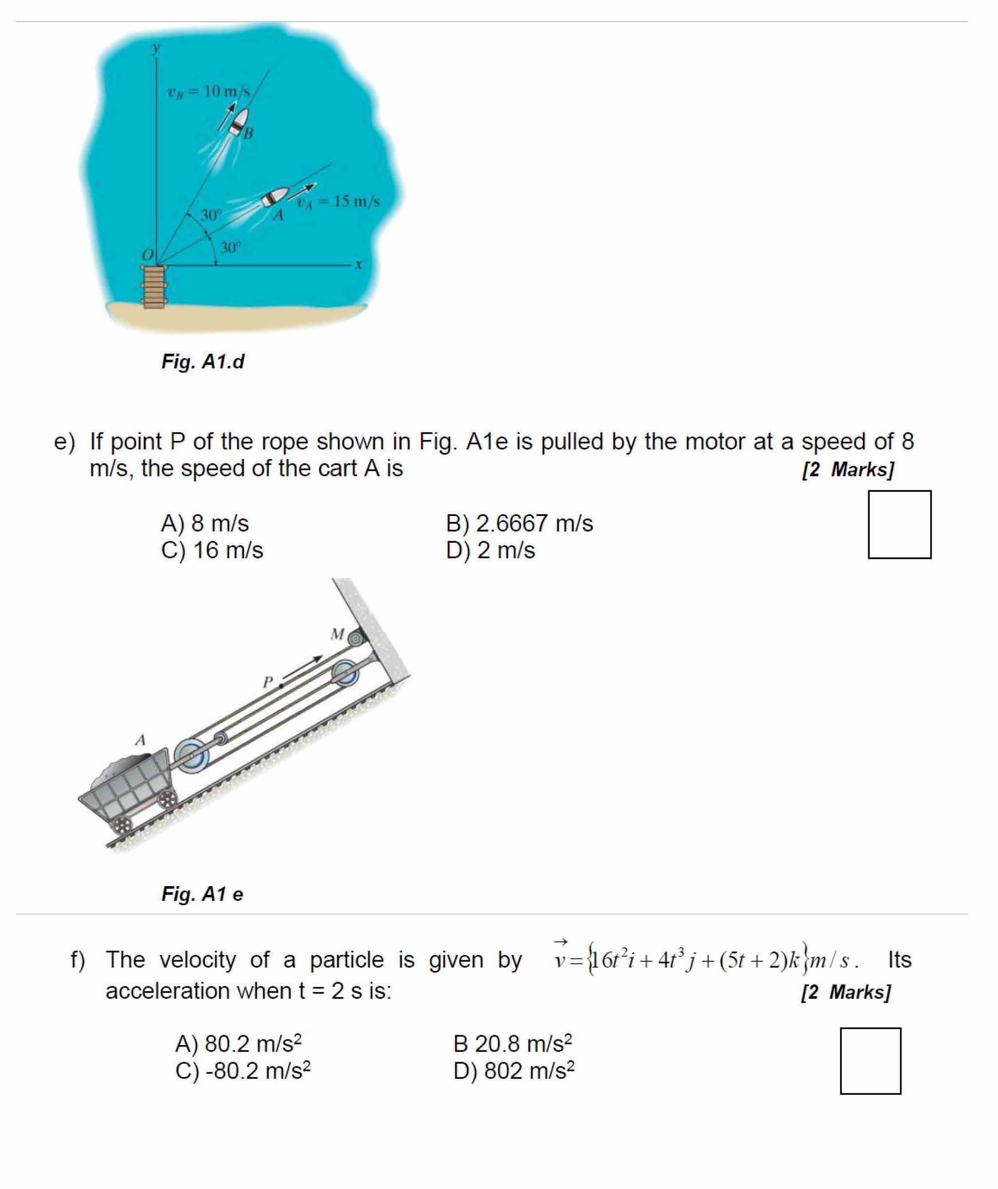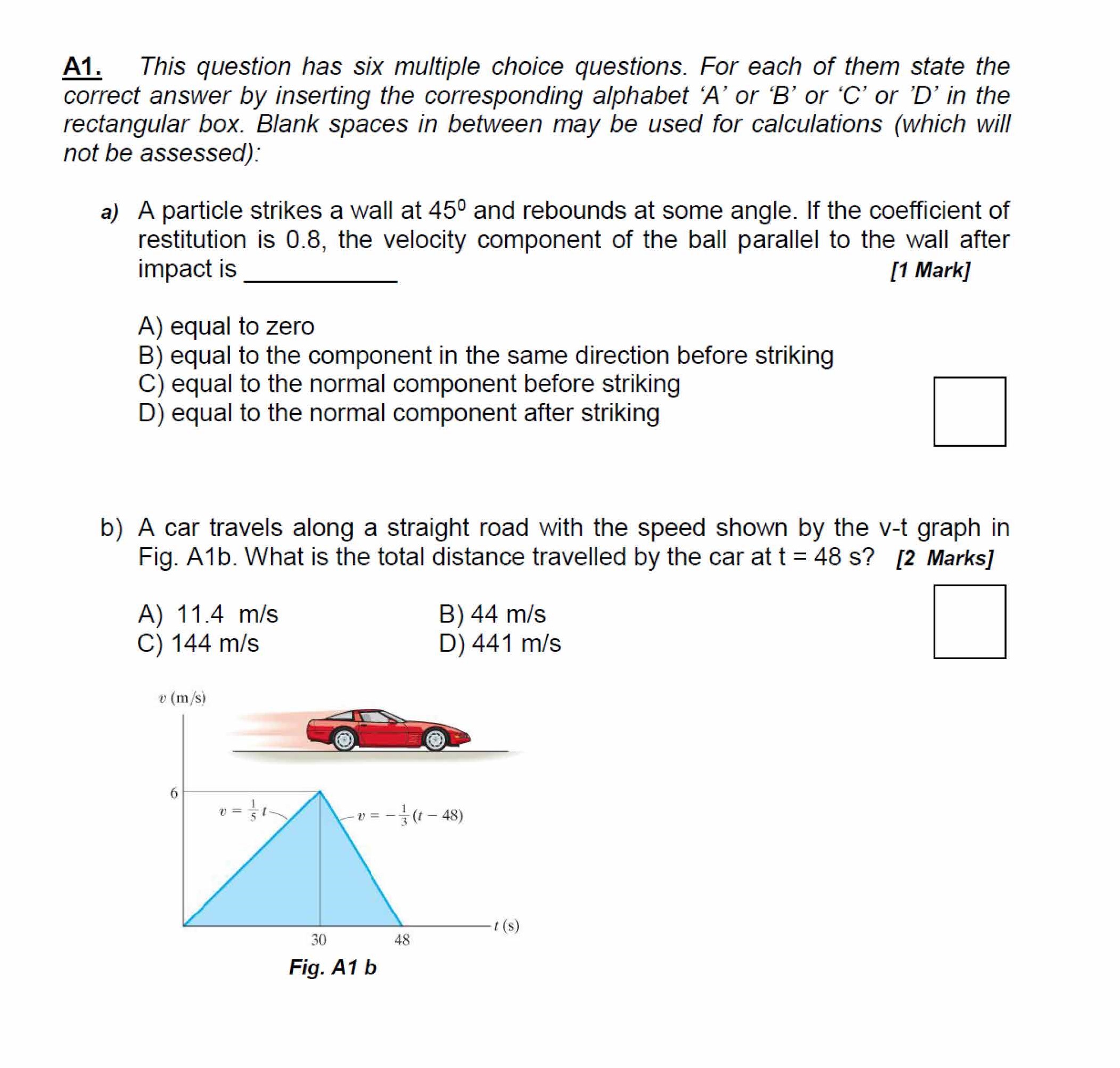 A1. This question has six multiple choice questions. For each of t...