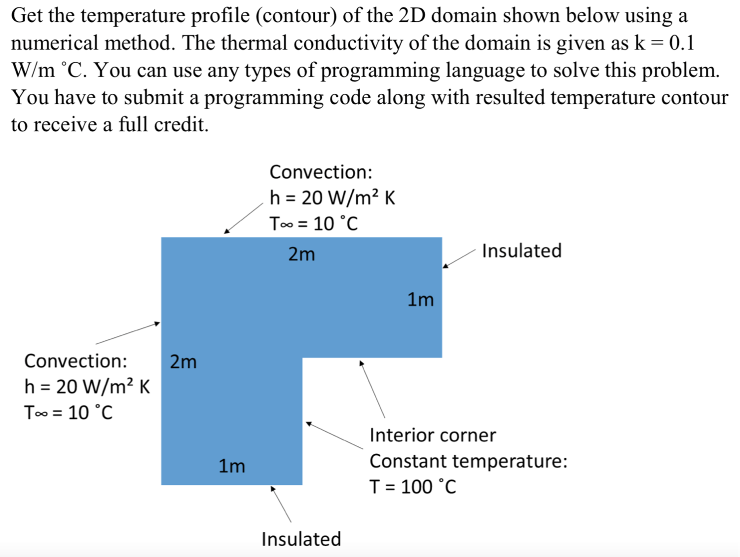 Get the temperature profile (contour) of the 2D domain shown below ...
