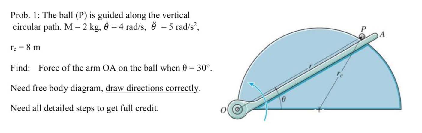 Prob. 1: The ball (P) is guided along the vertical circular path. ...