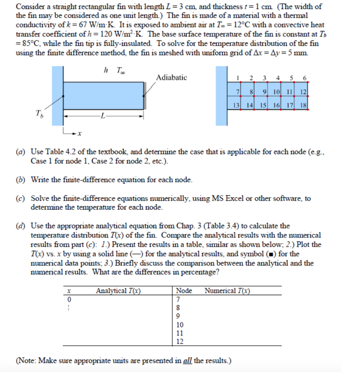 Consider a straight rectangular fin with length L = 3 cm, and thick...