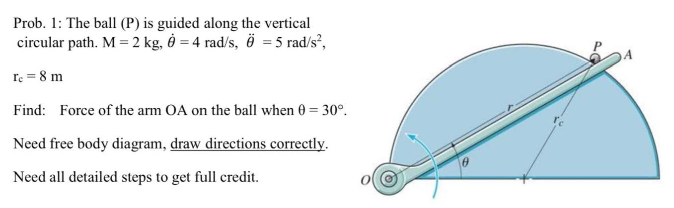 Prob. 1: The ball (P) is guided along the vertical circular path....