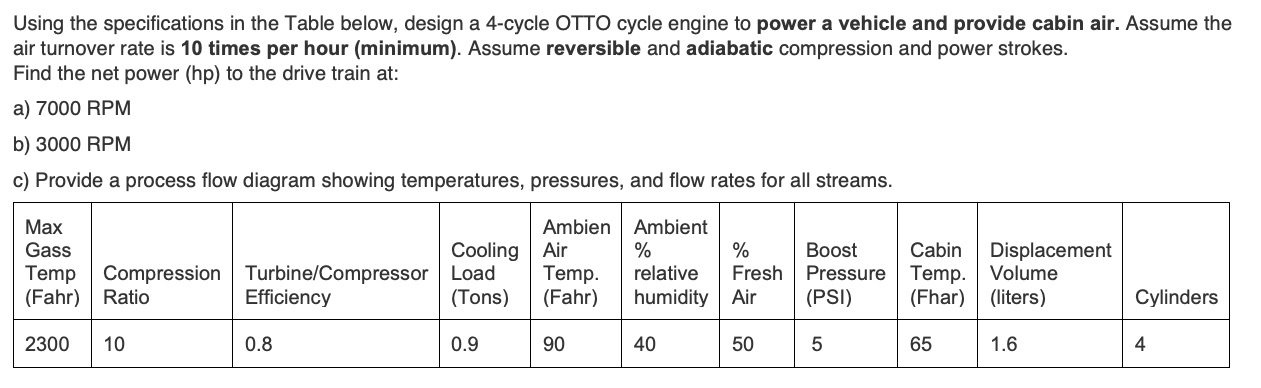 Using the specifications in the Table below, design a 4-cycle OTTO ...