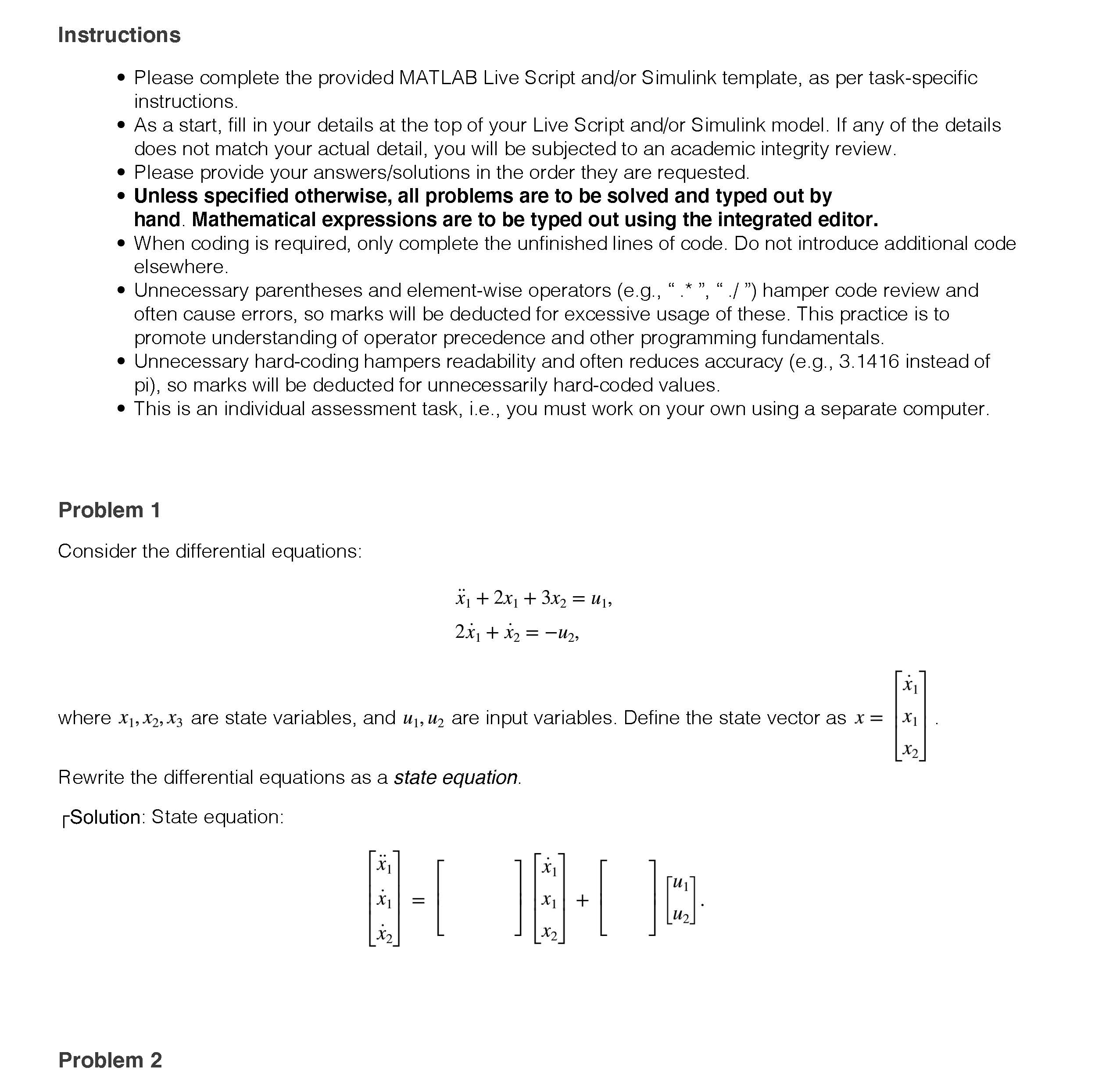 Instructions • Please complete the provided MATLAB Live Scri...