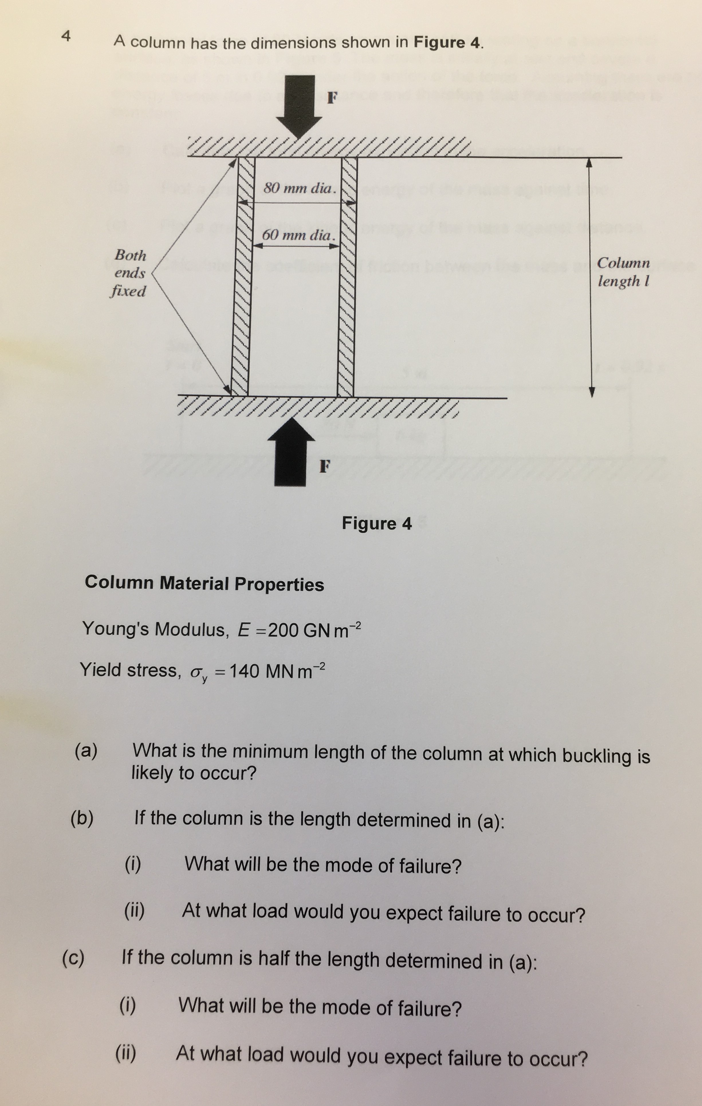 4 A column has the dimensions shown in Figure 4. 80 mm dia. 60 m...