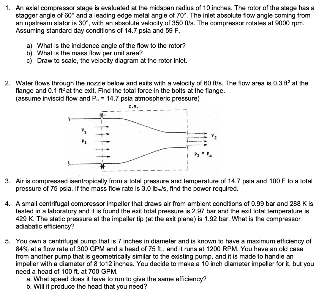 1. An axial compressor stage is evaluated at the midspan radius of ...