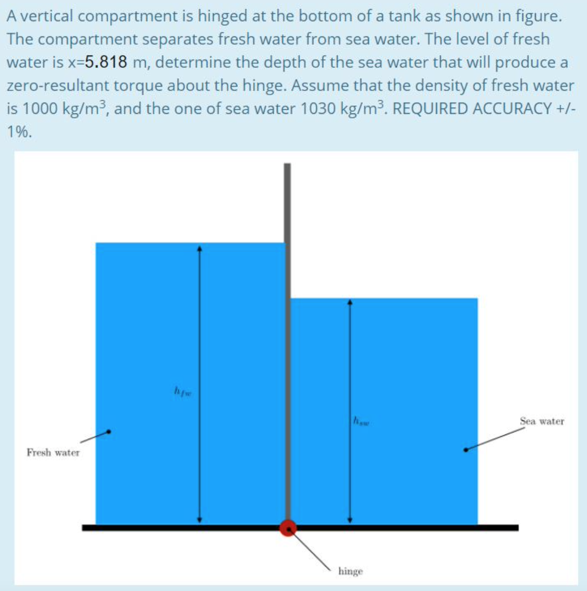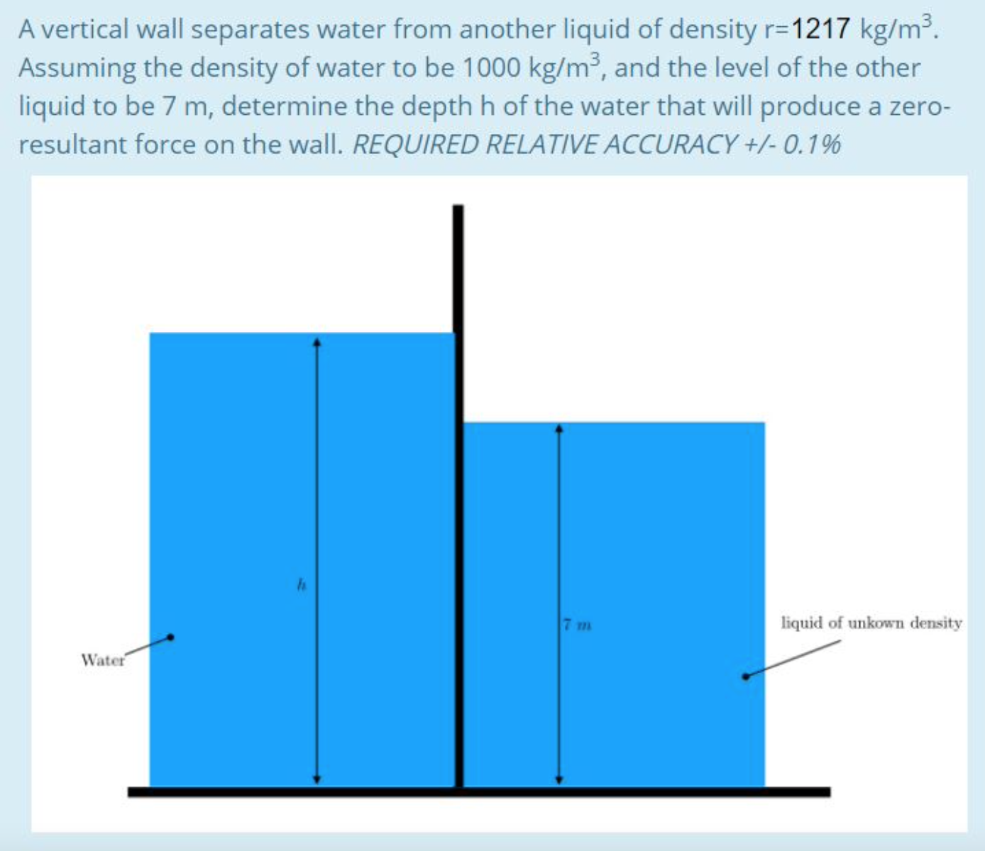A vertical wall separates water from another liquid of density r= 1...