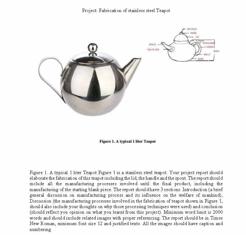 Project: Fabrication of stainless steel Teapot Figure 1. A typical...