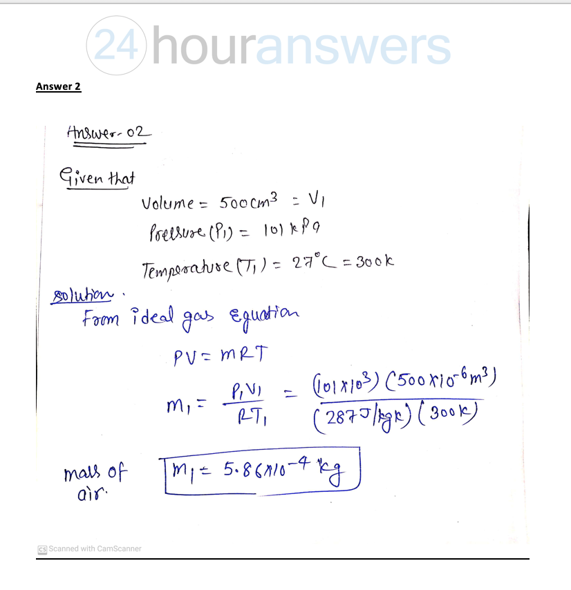 Use these values of gas constant and specific heat for air througho...