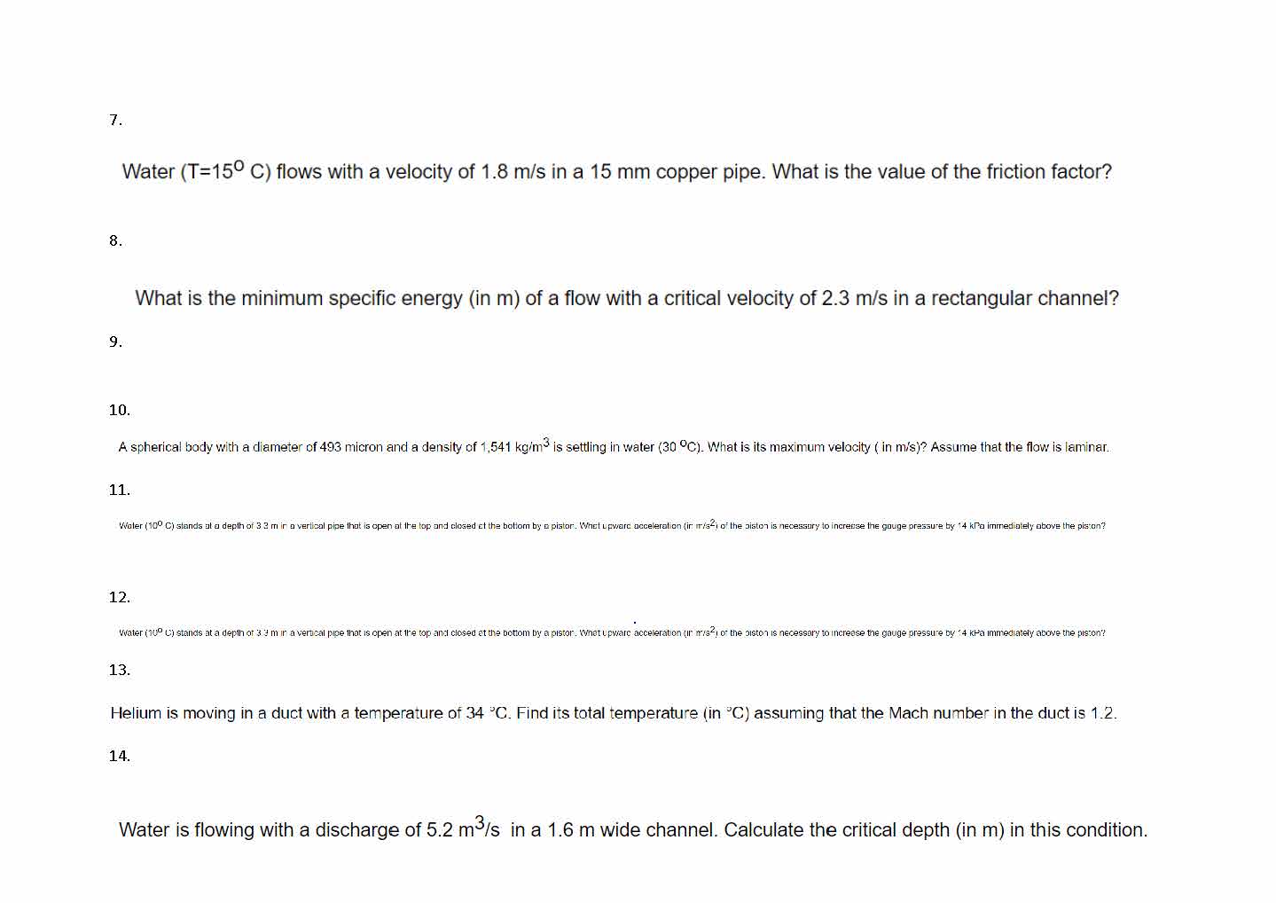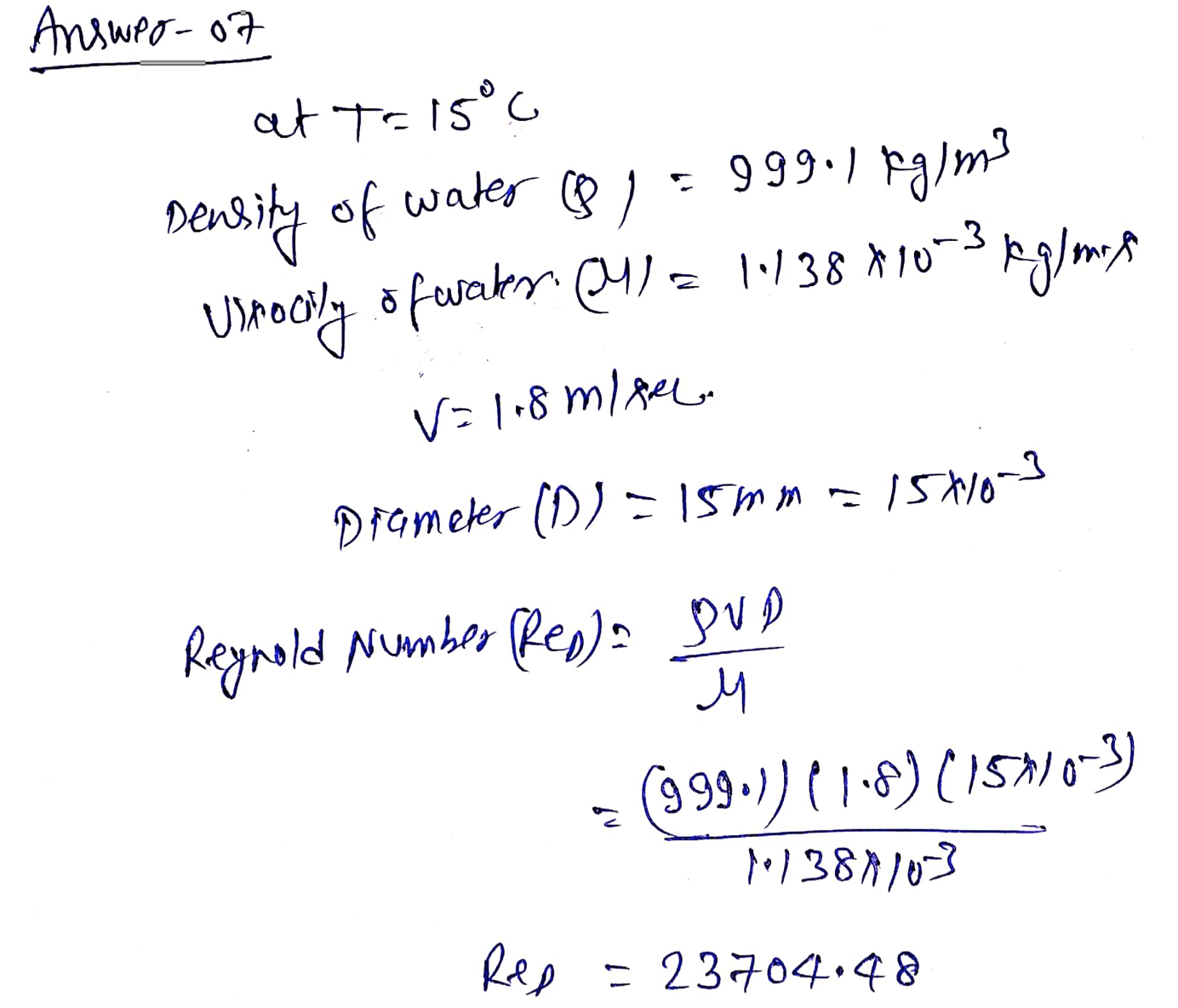 7. Water (T=15° C) flows with a velocity of 1.8 m/s in a 15 mm ...
