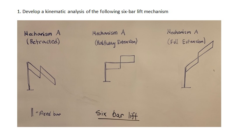 1. Develop a kinematic analysis of the following six-bar lift mecha...
