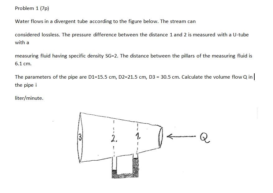 Problem 1 (7p) Water flows in a divergent tube according to the fi...