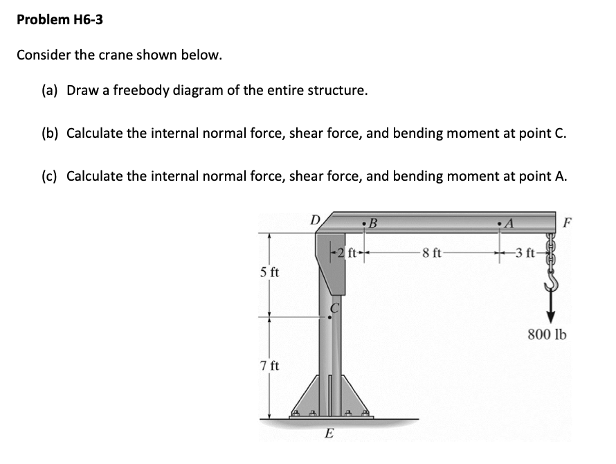 Problem H6-3 Consider the crane shown below. (a) Draw a freebody ...