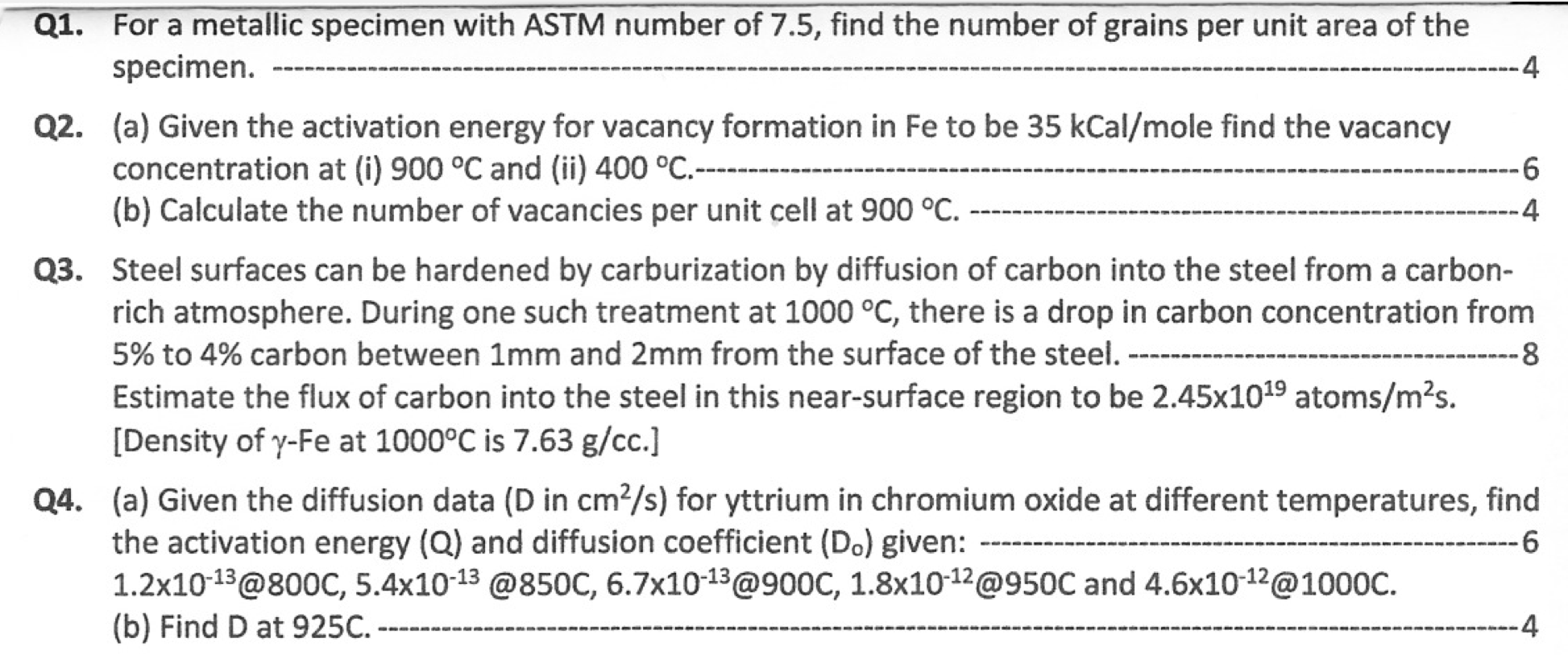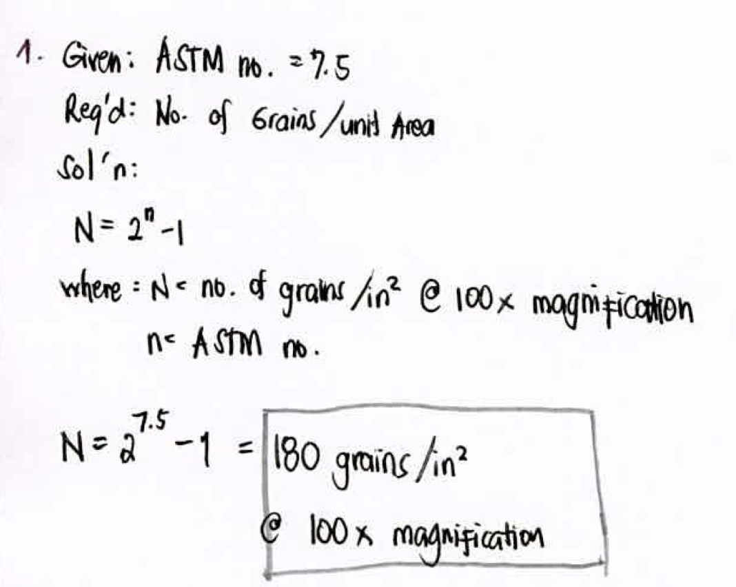Q1. For a metallic specimen with ASTM number of 7.5, find the numb...