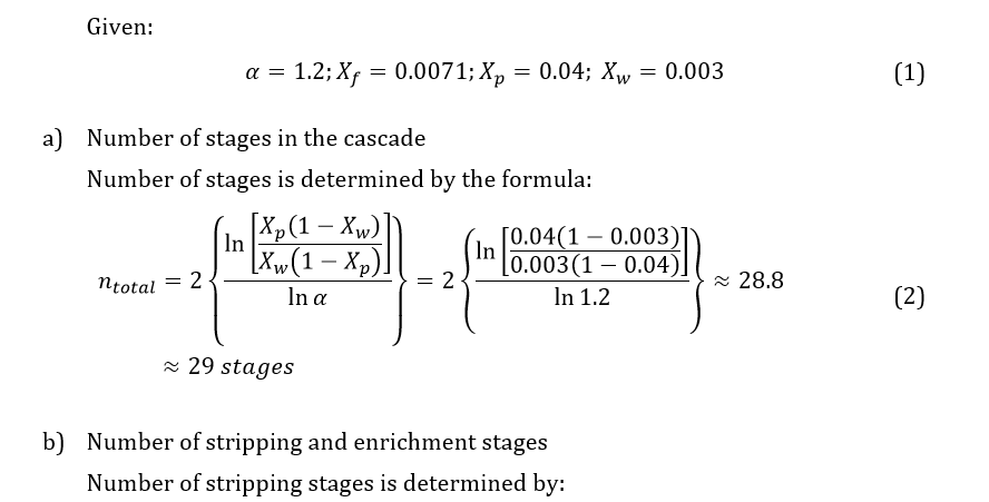 For a separation factor of 1.2, feed fraction of .0071, and product...