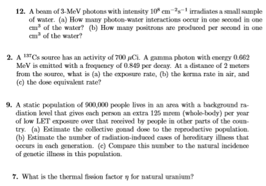 12. A beam of 3-MeV photons with intensity 108 em 2s- 1 irradiates...