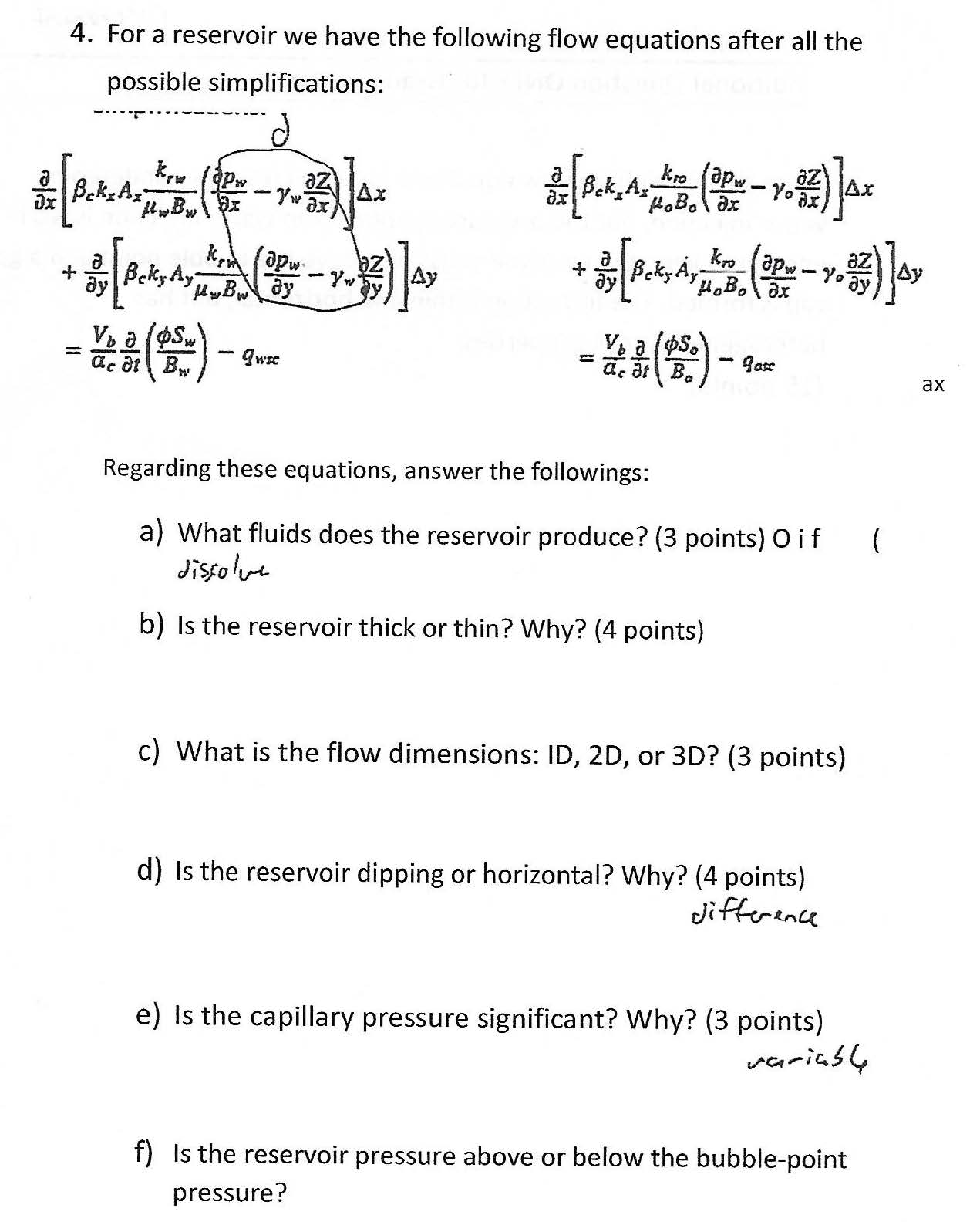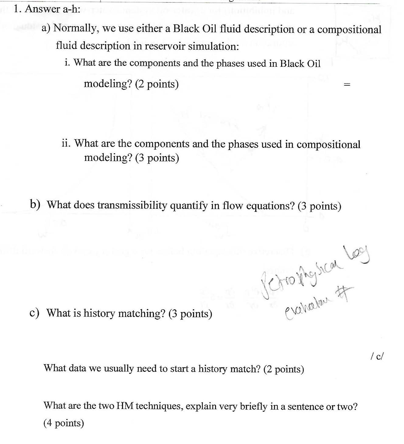 1. Answer a-h: a) Normally, we use either a Black Oil fluid descri...