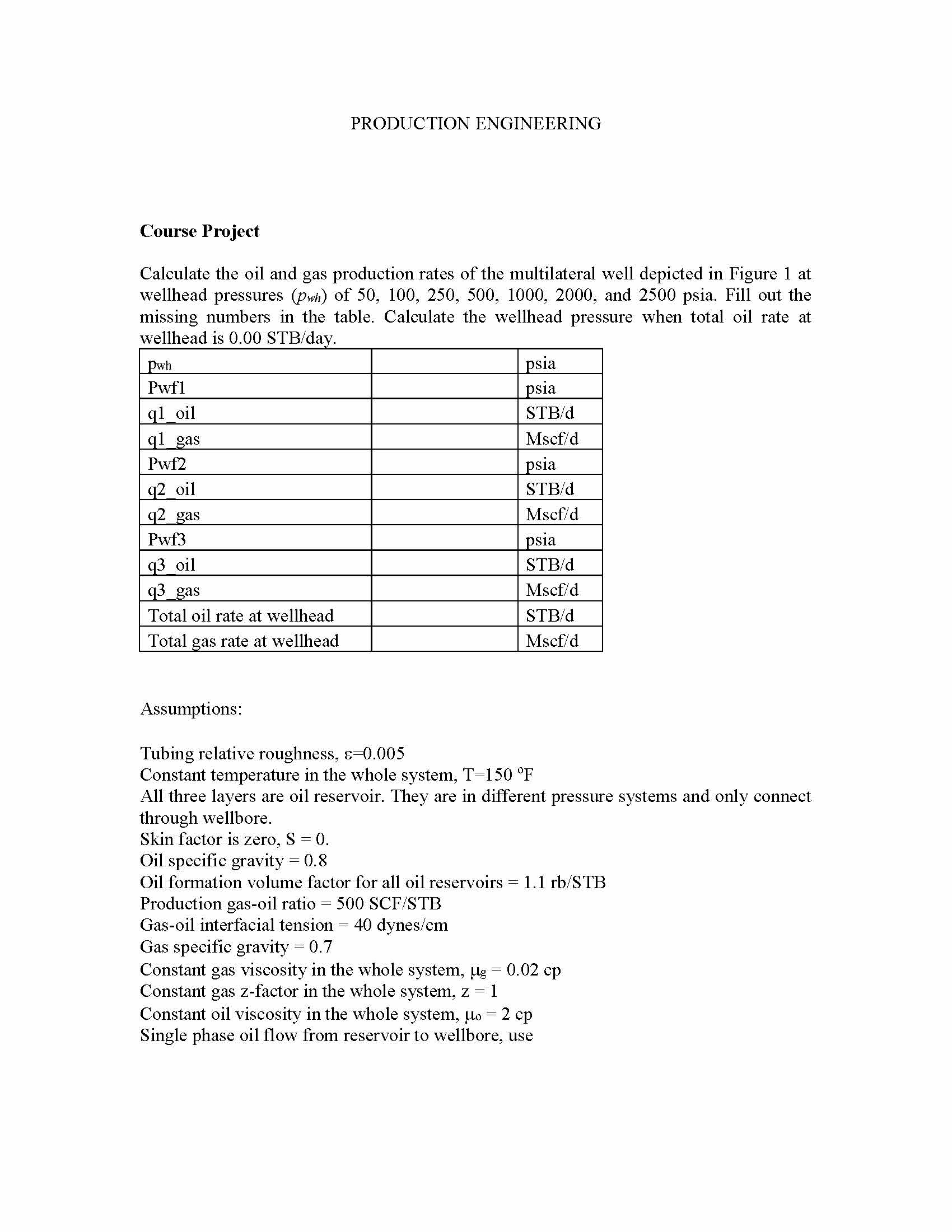 PRODUCTION ENGINEERING Course Project Calculate the oil and gas p...
