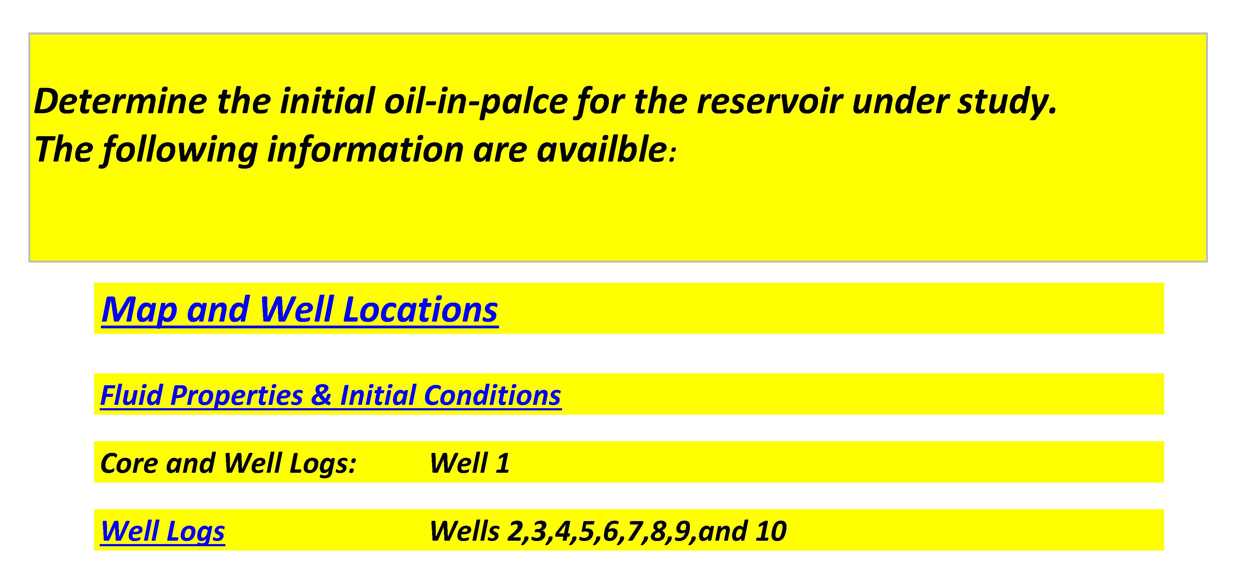 Determine the initial oil-in-palce for the reservoir under study. T...