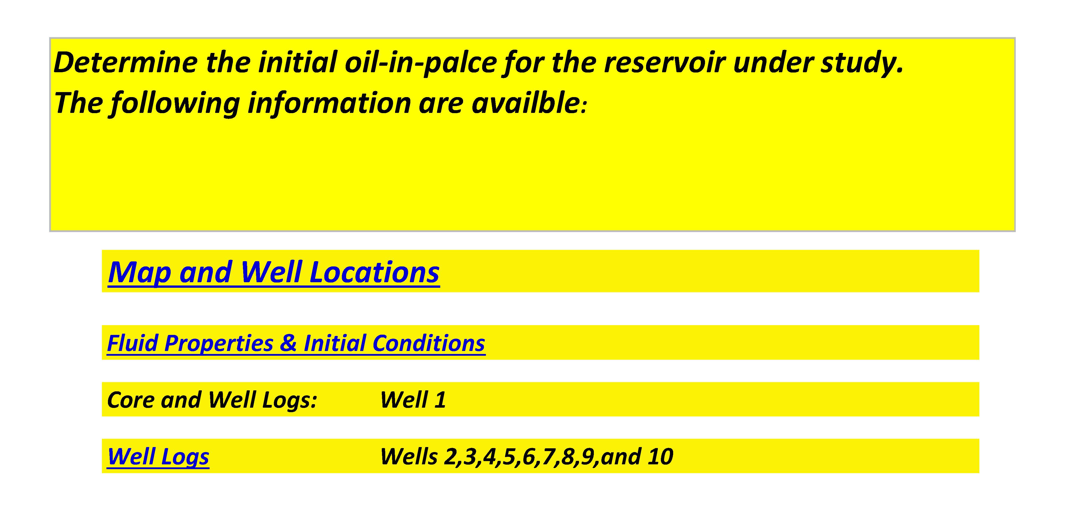 Determine the initial oil-in-palce for the reservoir under study. T...