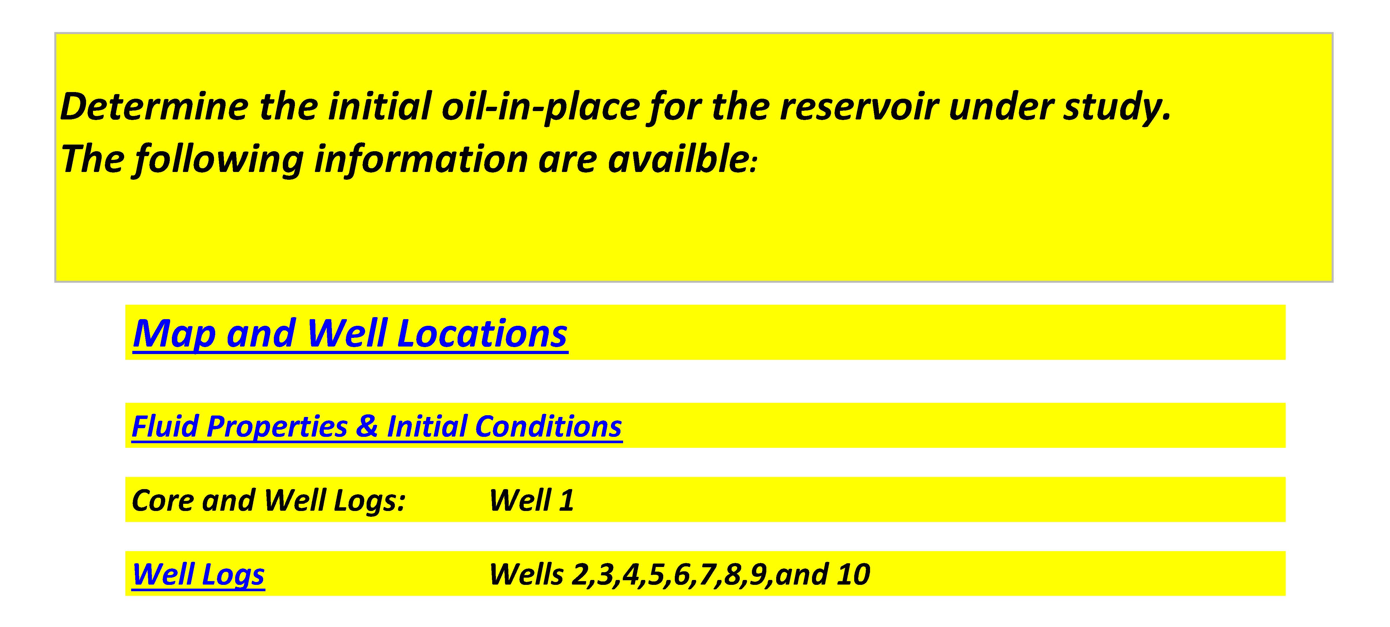 Determine the initial oil-in-place for the reservoir under study. T...