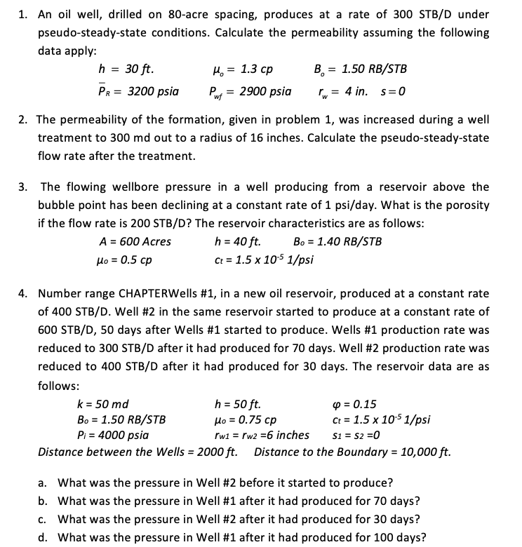 1. An oil well, drilled on 80-acre spacing, produces at a rate of 3...