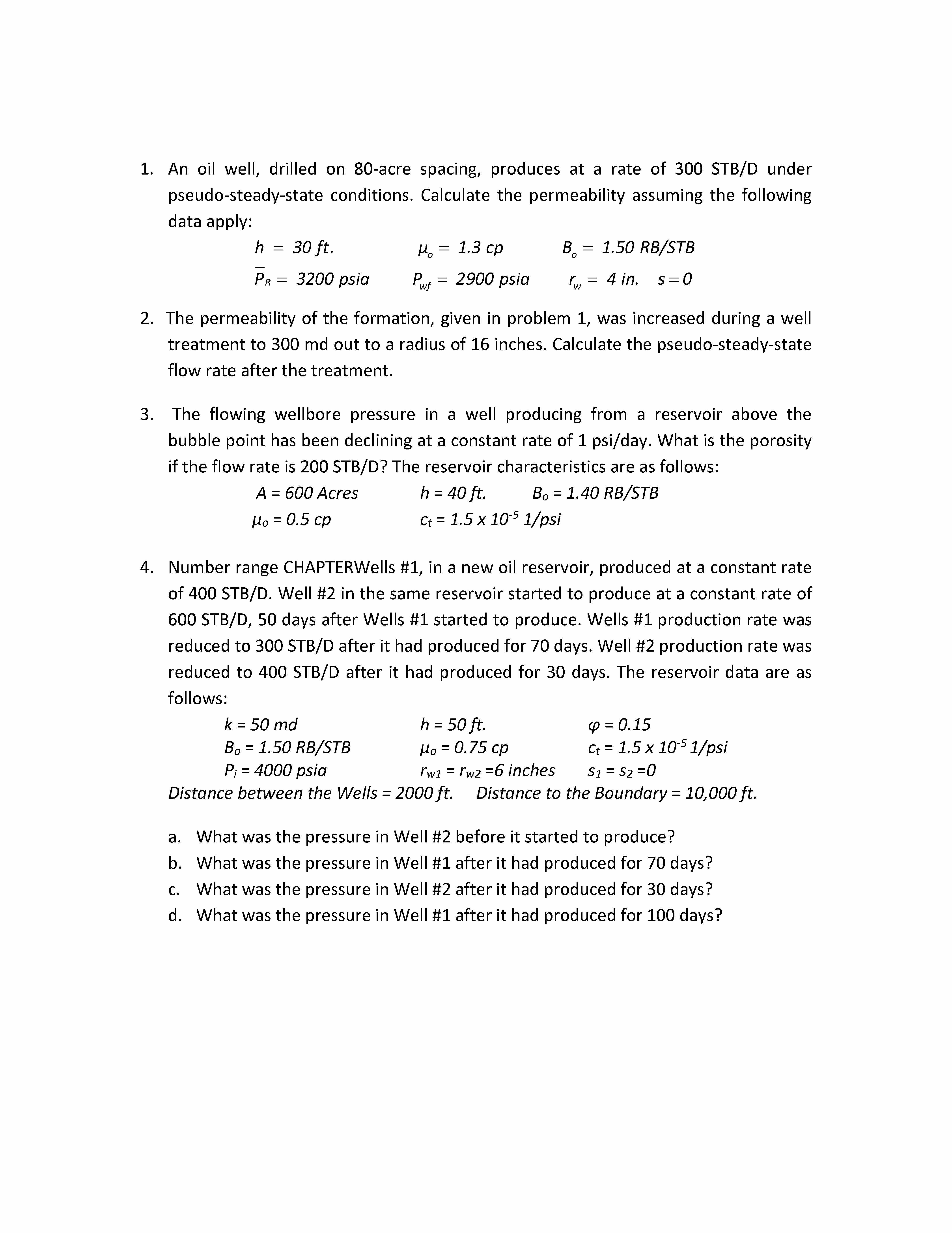 1. An oil well, drilled on 80-acre spacing, produces at a rate of 3...