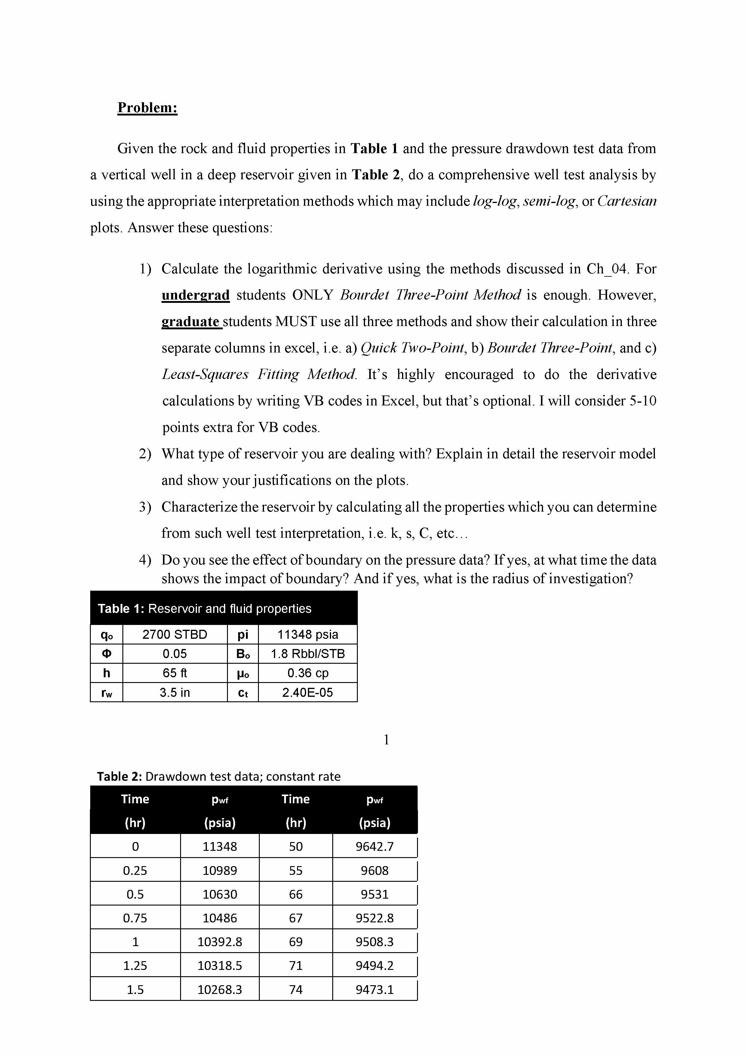 Problem: Given the rock and fluid properties in Table 1 and the pr...
