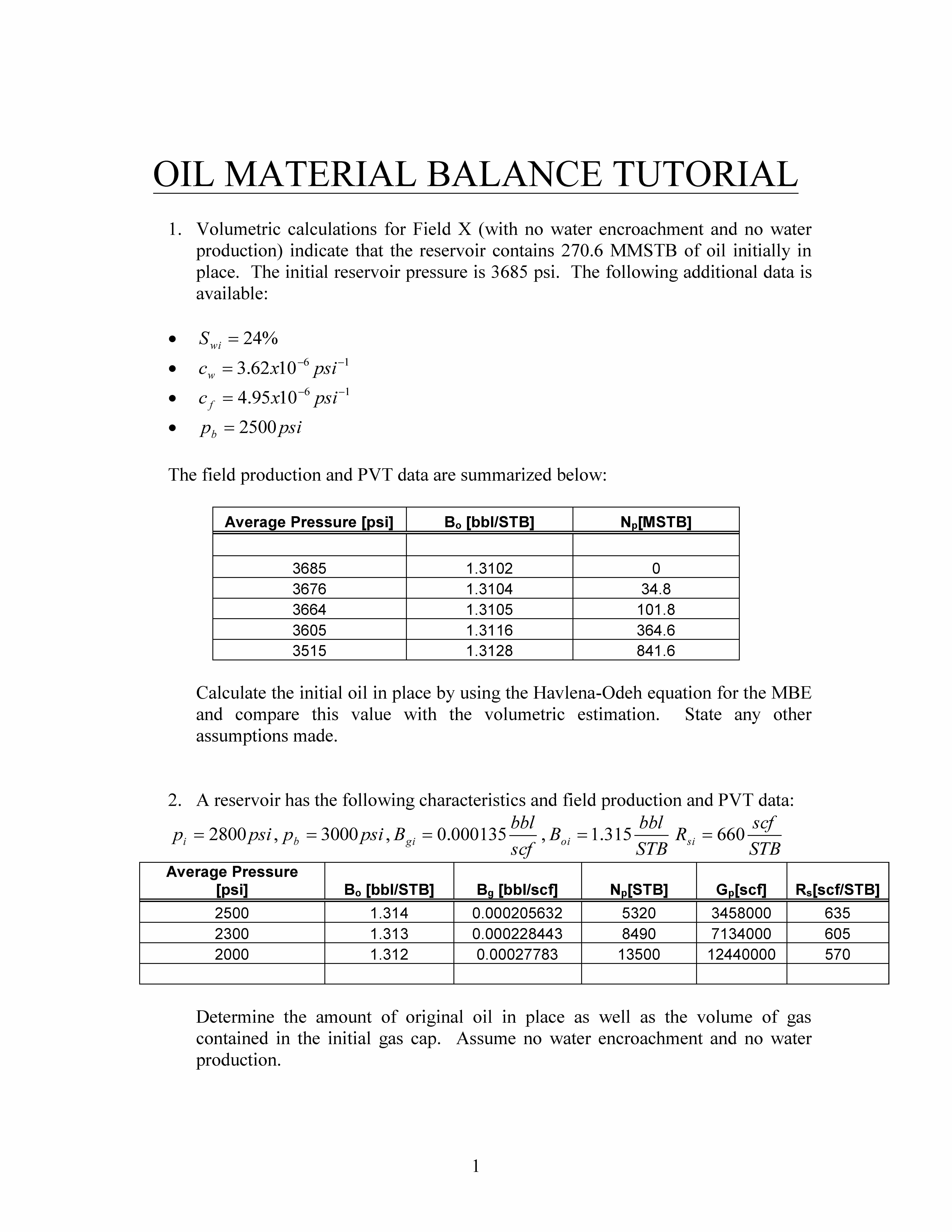 1 OIL MATERIAL BALANCE TUTORIAL 1. Volumetric calculations for Fi...