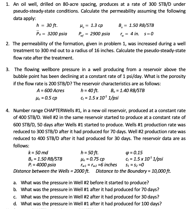 1. An oil well, drilled on 80-acre spacing, produces at a rate of 3...