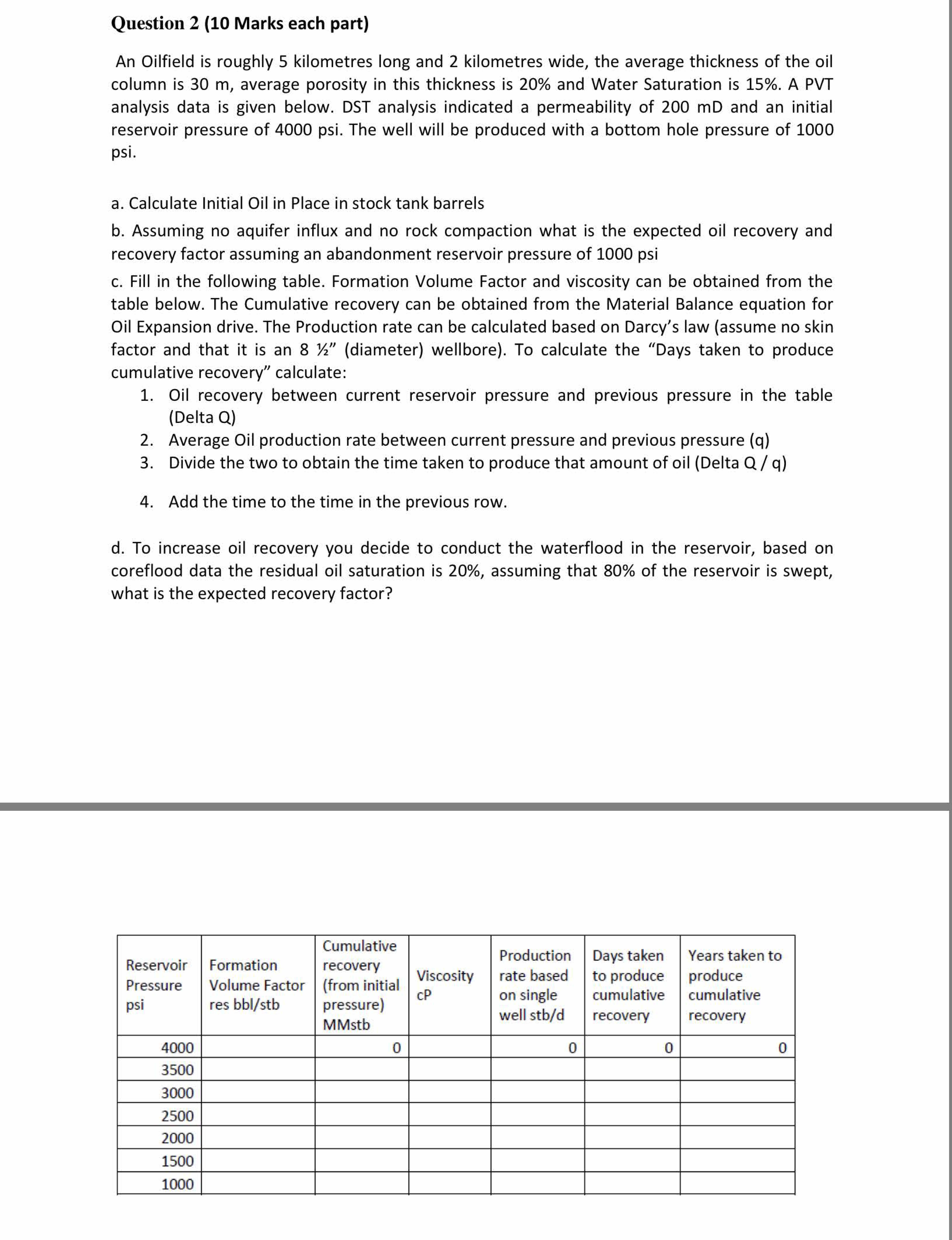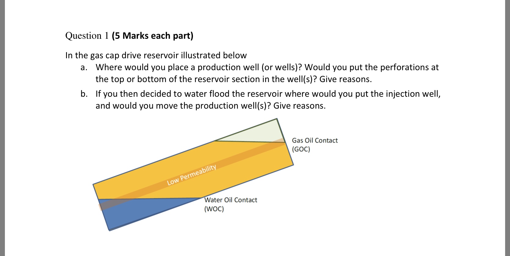 Question 1 (5 Marks each part) In the gas cap drive reservoir illu...