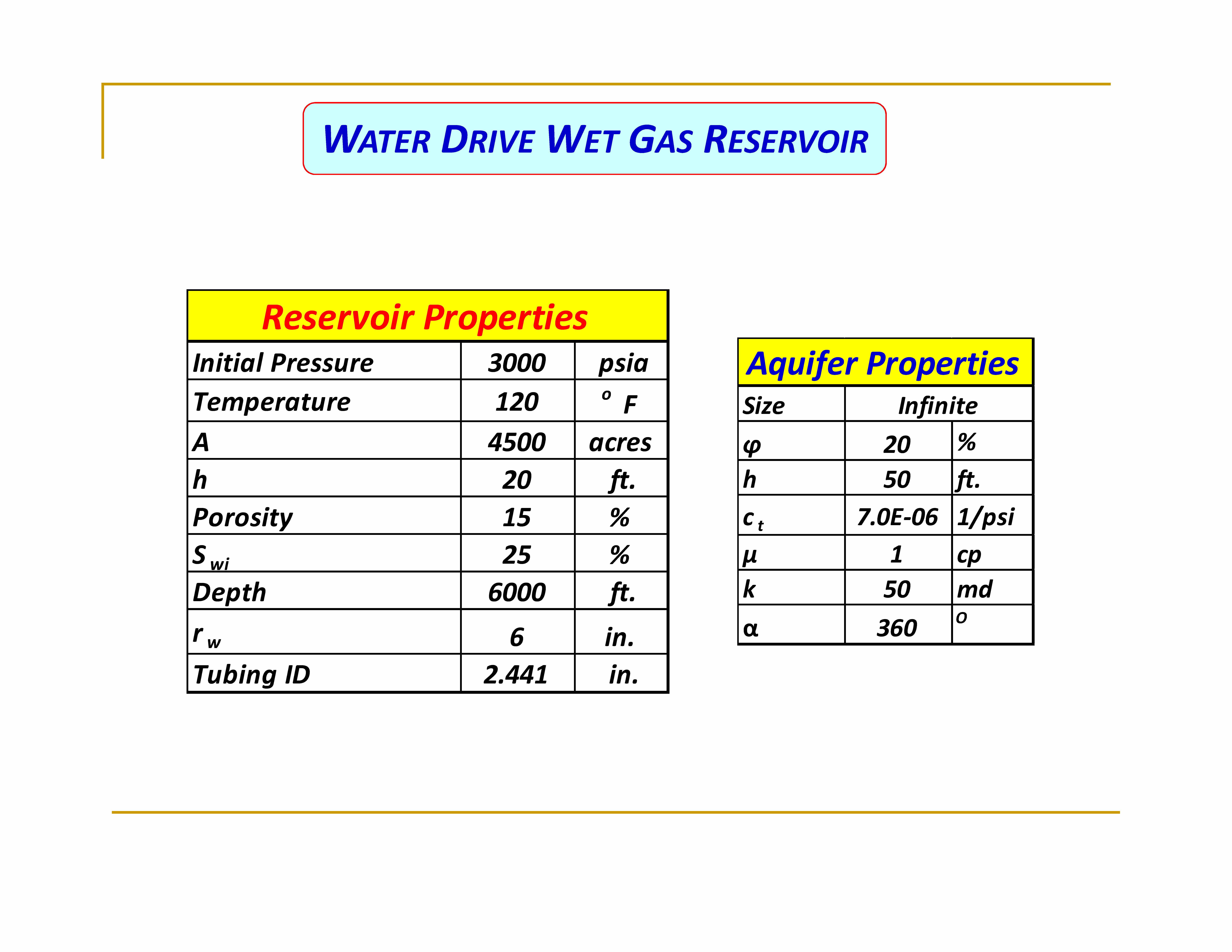 PROJECT WATER DRIVE WET GAS RESERVOIR Reservoir Properties...