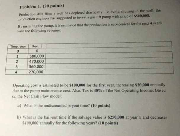 Problem 1: (20 points) Production data from a well has depleted dr...