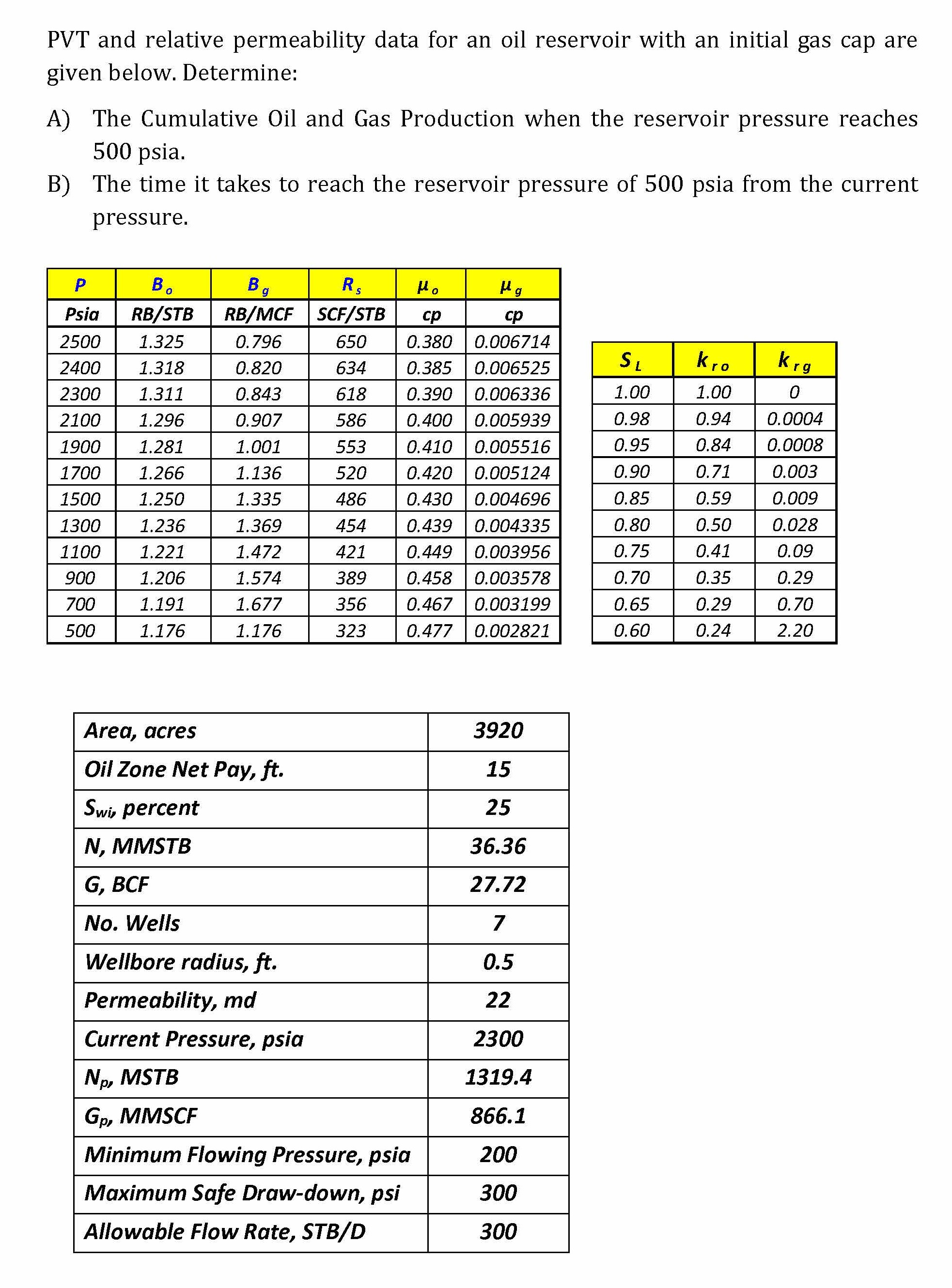 PVT and relative permeability data for an oil reservoir with an ini...