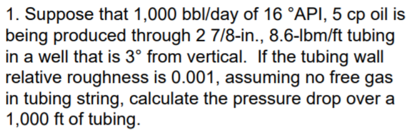 1. Suppose that 1,000 bbl/day of 16 °API, 5 cp oil is being produ...