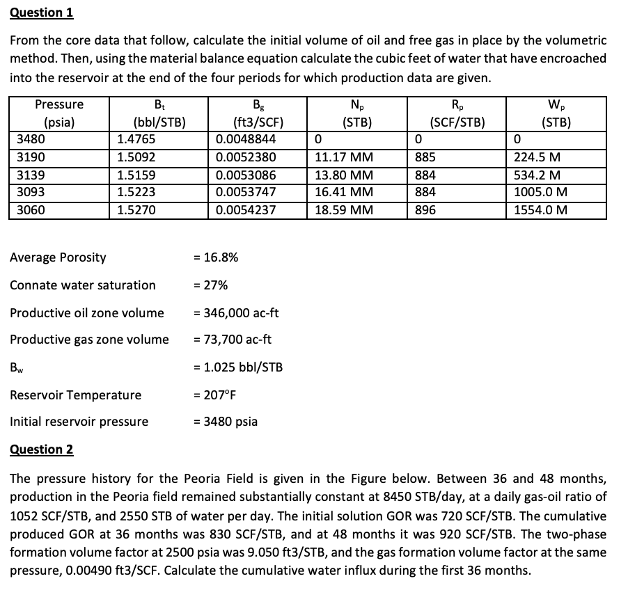 Question 1 From the core data that follow, calculate the initial v...