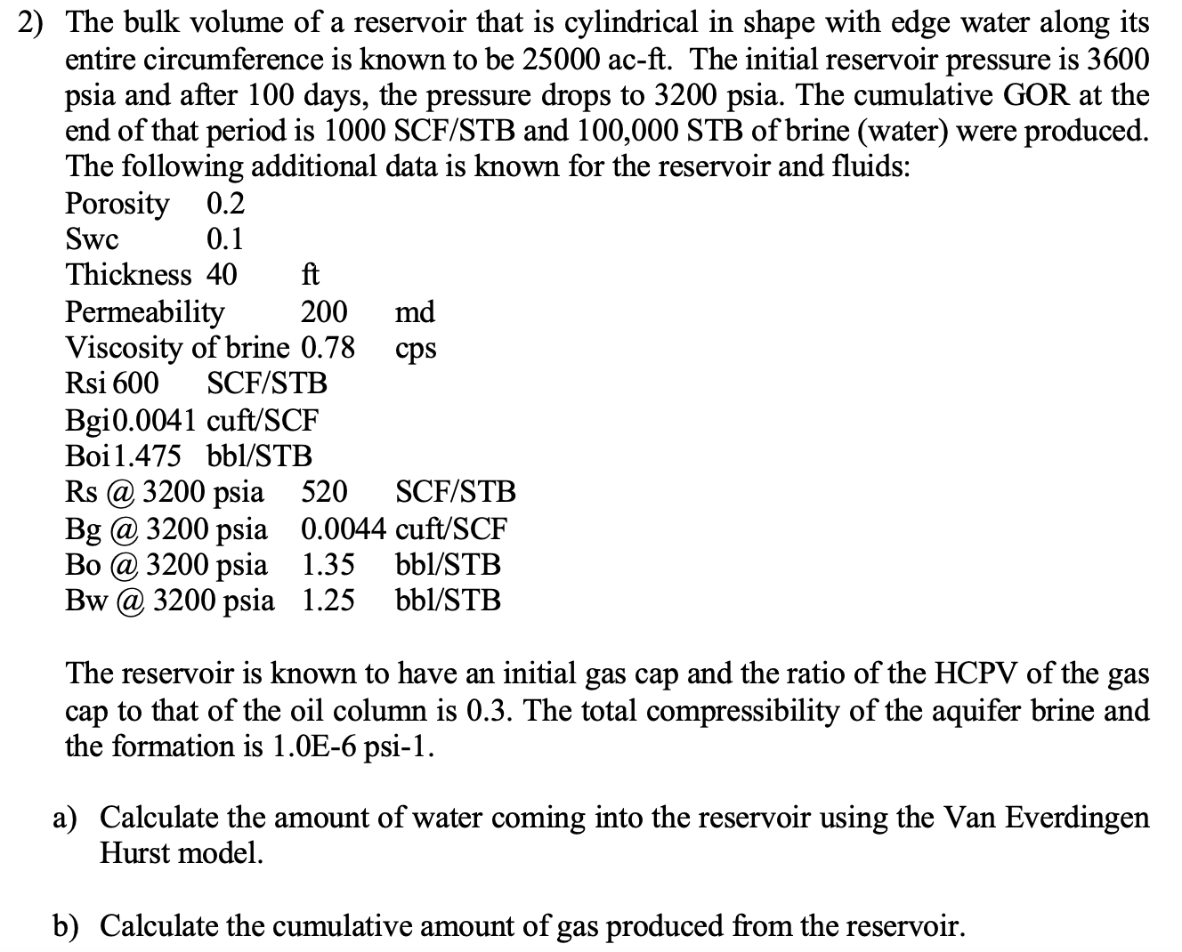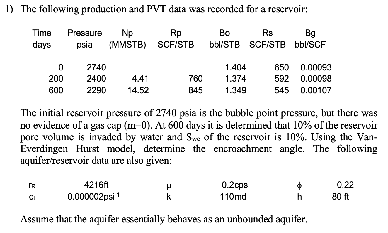 1) The following production and PVT data was recorded for a reservo...