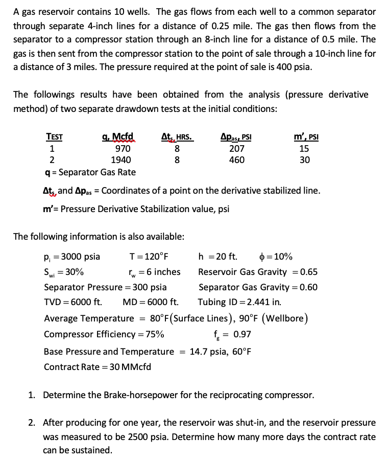 A gas reservoir contains 10 wells. The gas flows from each well to ...