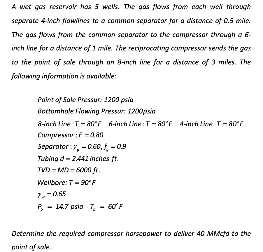 A wet gas reservoir has 5 wells. The gas flows from each well throu...