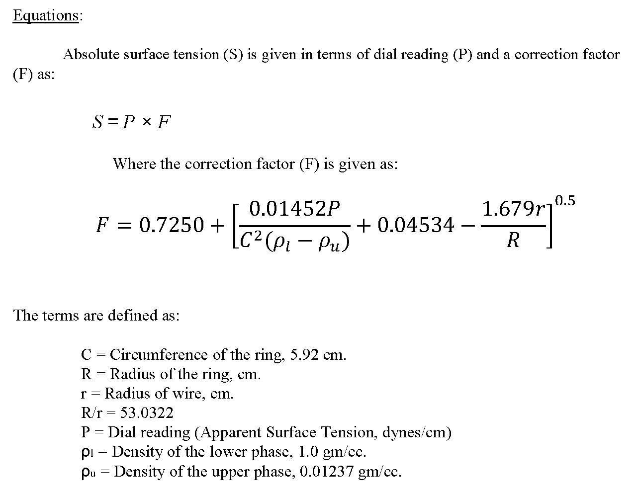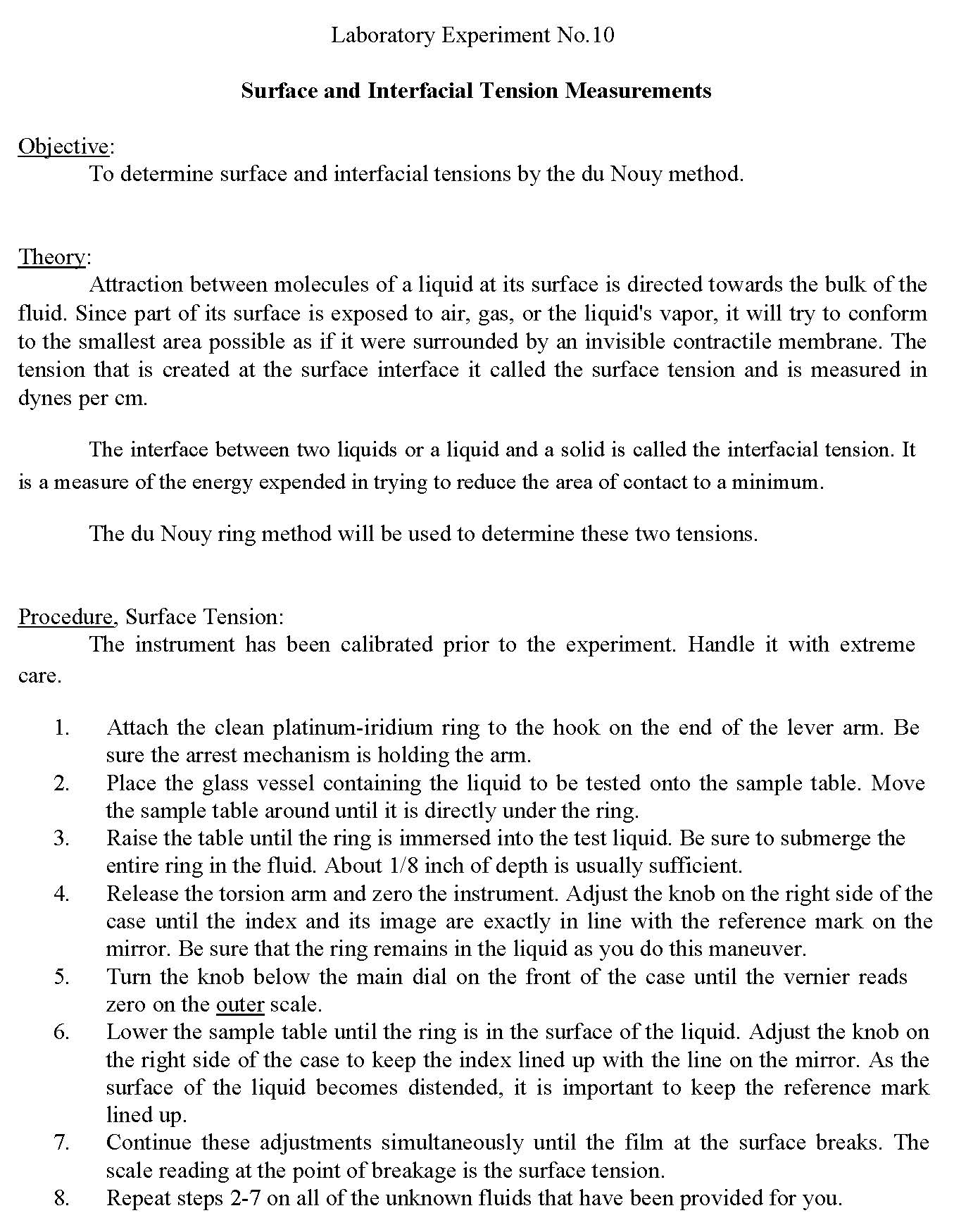 Laboratory Experiment No. 10 Surface and Interfacial Tension Measu...