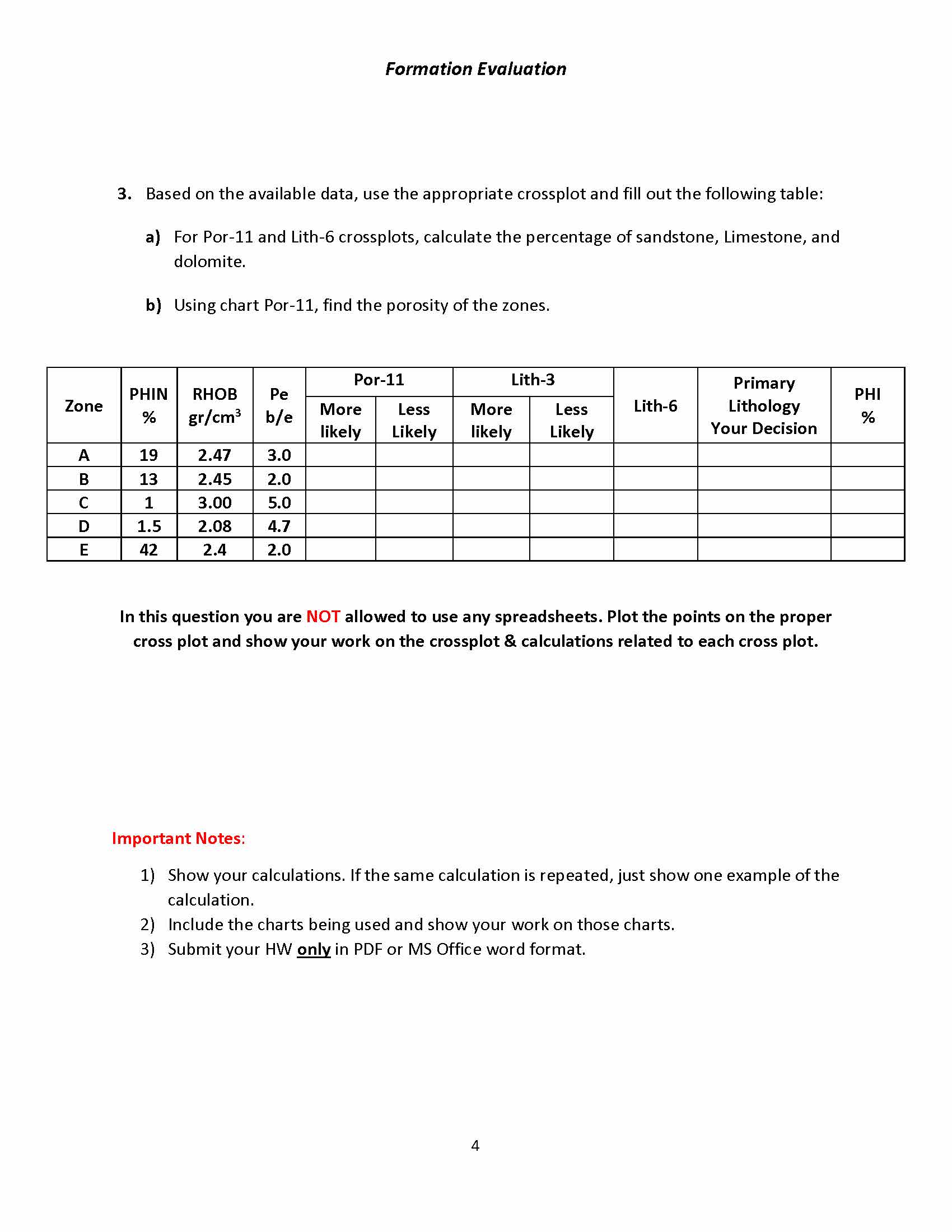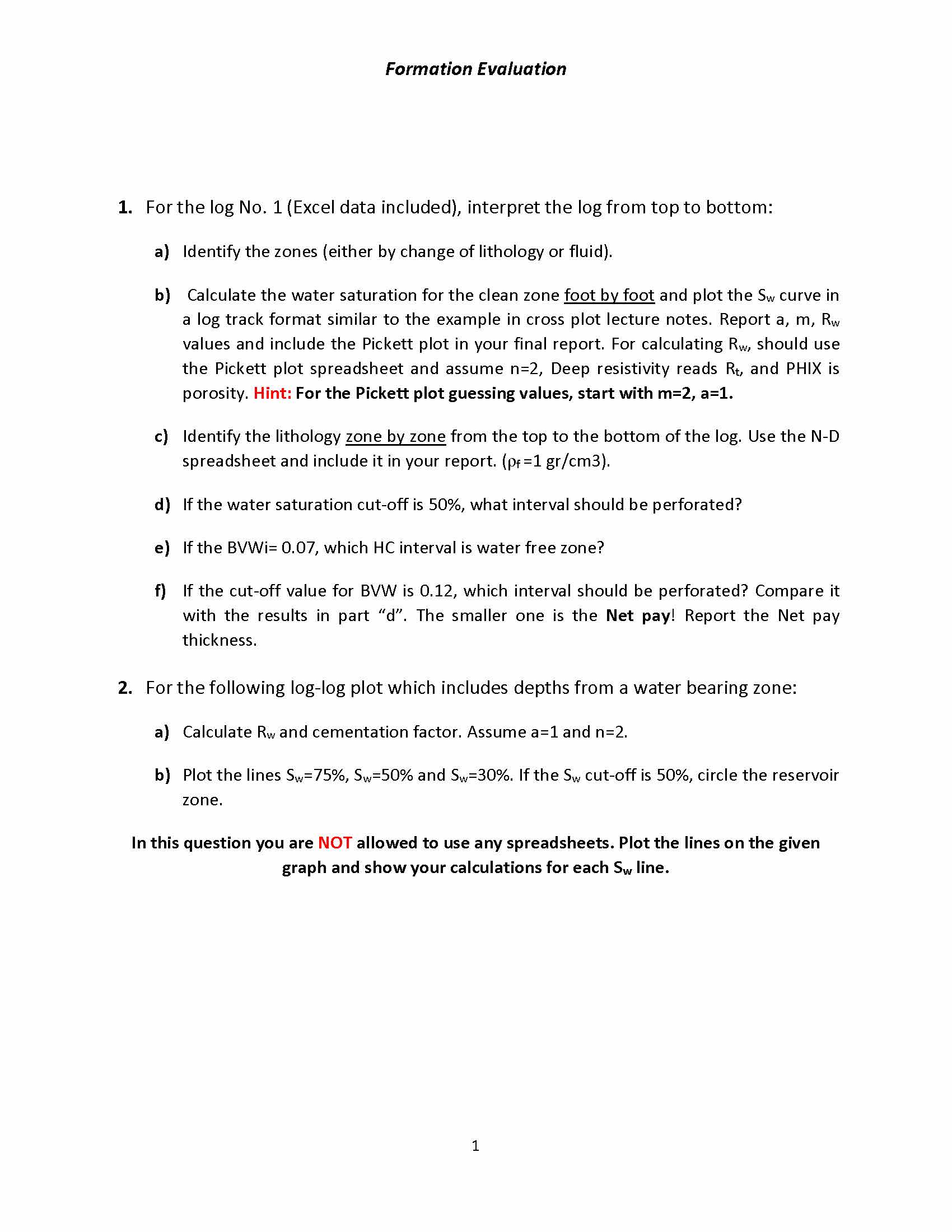 Formation Evaluation 1. For the log No. (Excel data included), int...