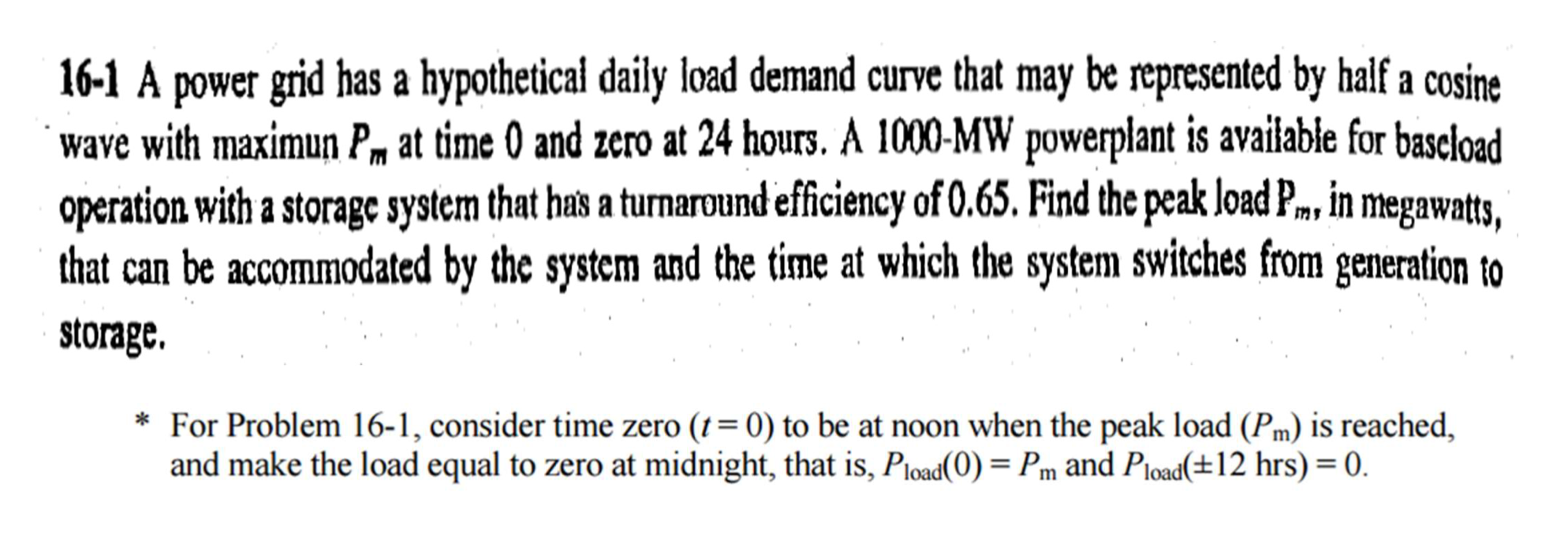 16-1 A power grid has a hypothetical daily load demand curve that m...