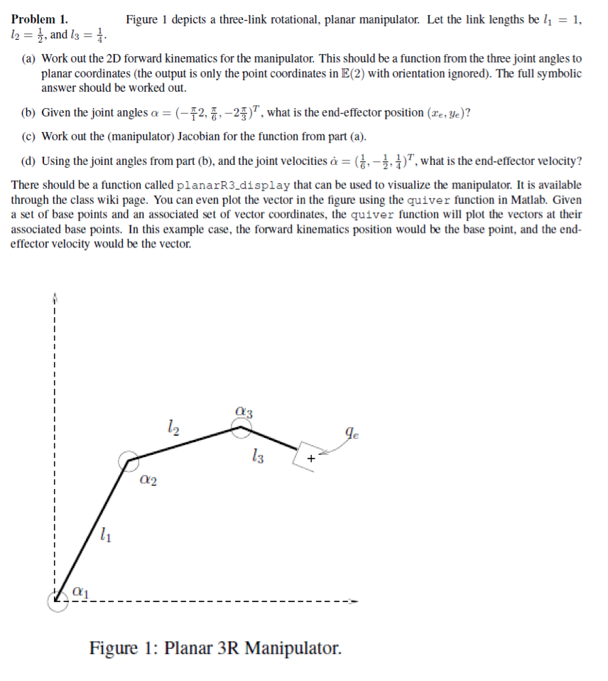 Problem 1. Figure 1 depicts a three-link rotational, planar manipu...
