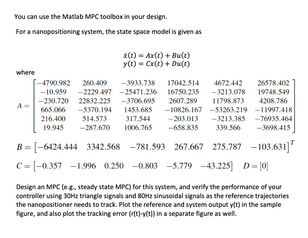 For a nanopositioning system, the state space model is given as x(...