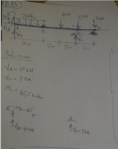 E13 Draw SF, BM and deflected shape. Note pin! 3 kN/m 4kN 2 kN ...