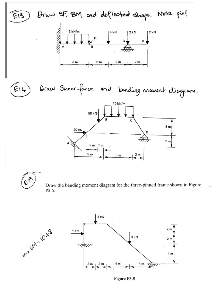 E13 Draw SF, BM and deflected shape. Note pin! 3 kN/m 4kN 2 kN...