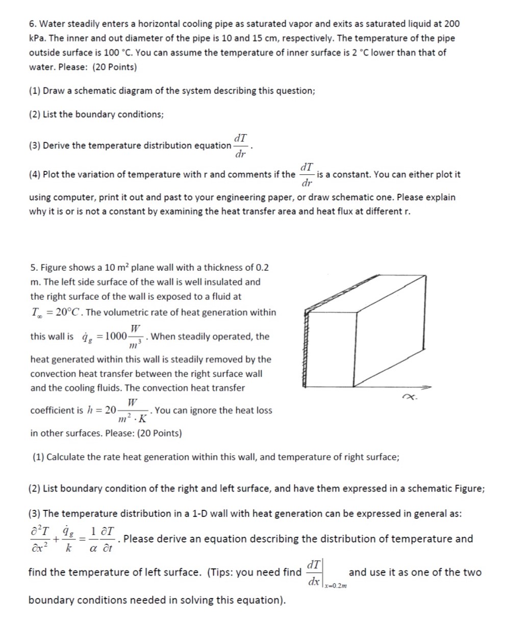 6. Water steadily enters a horizontal cooling pipe as saturated vap...