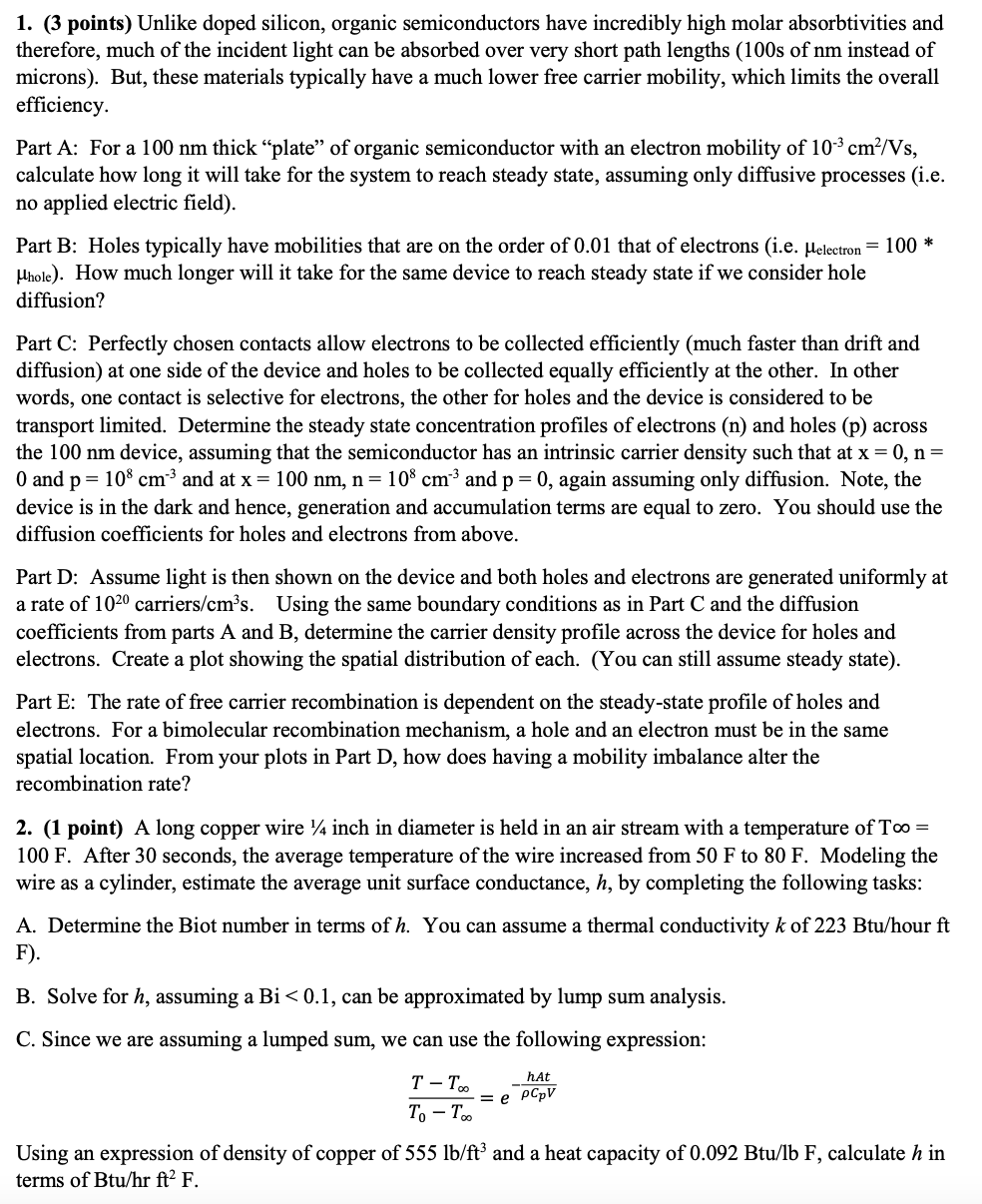 1. (3 points) Unlike doped silicon, organic semiconductors have inc...