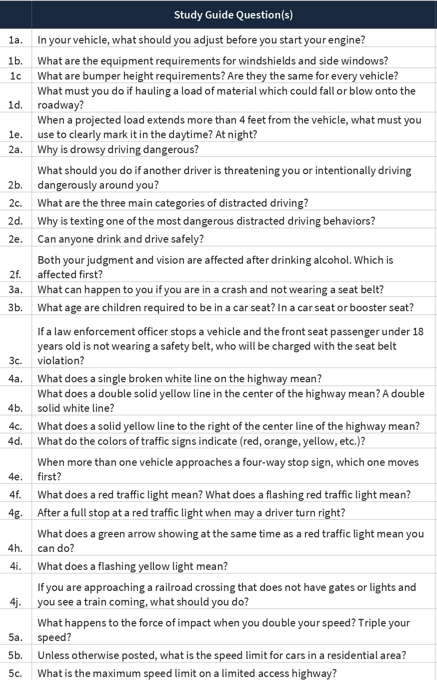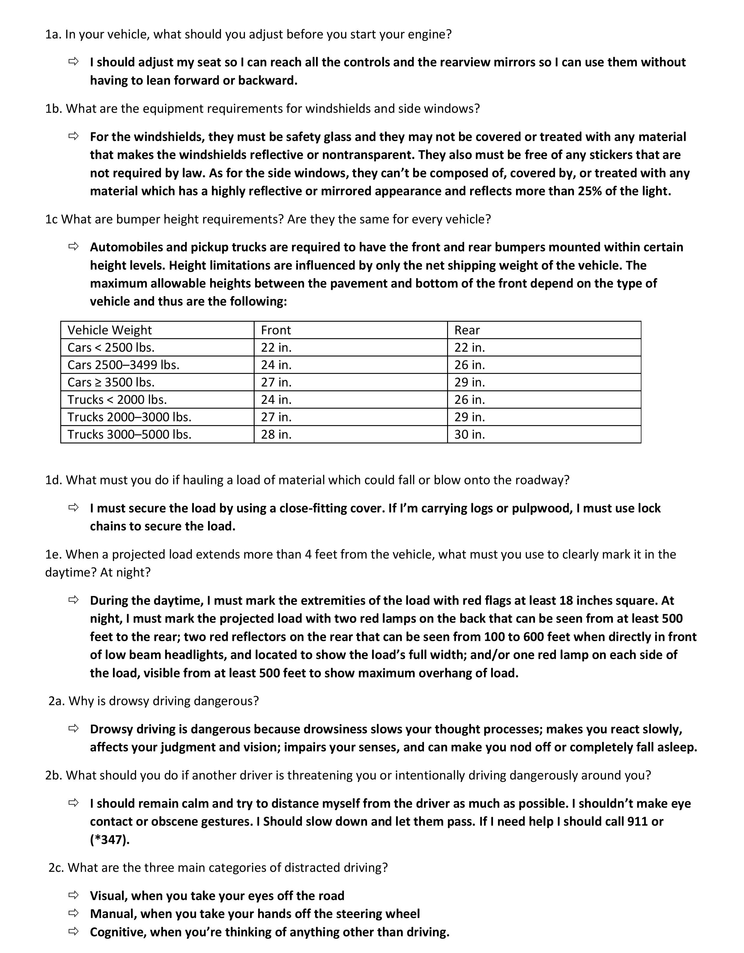 Study Guide Question(s) 1a. In your vehicle, what should you adju...